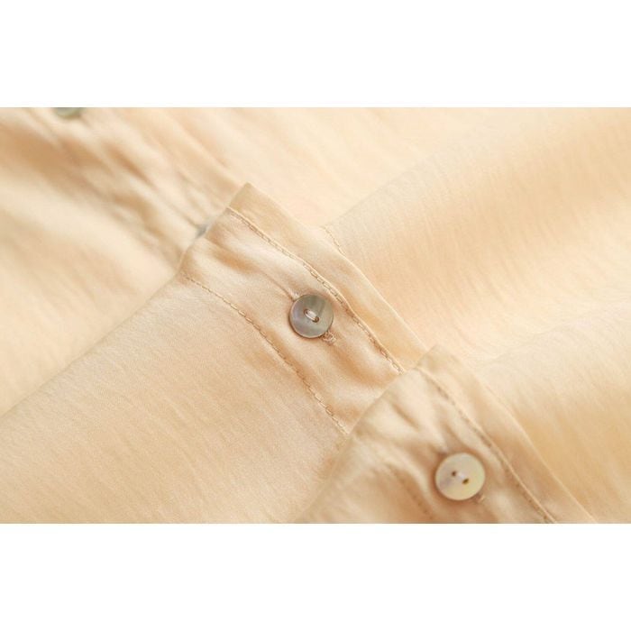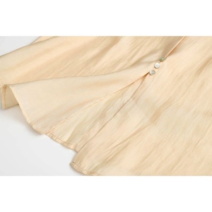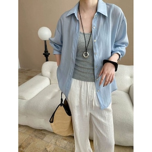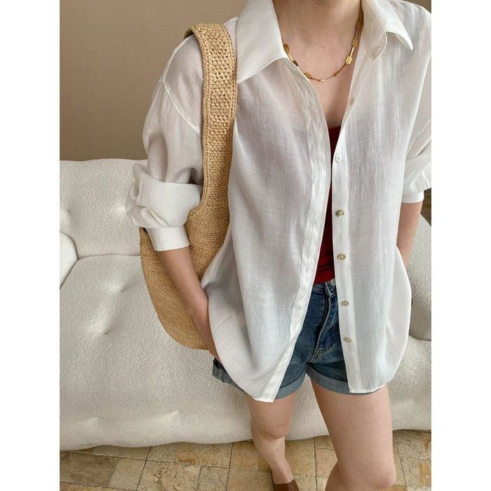 長めの丈感がこなれた印象を与え、袖をロールアップしたり裾を結んだりすれば軽快な雰囲気に。