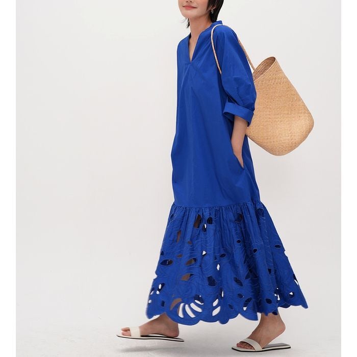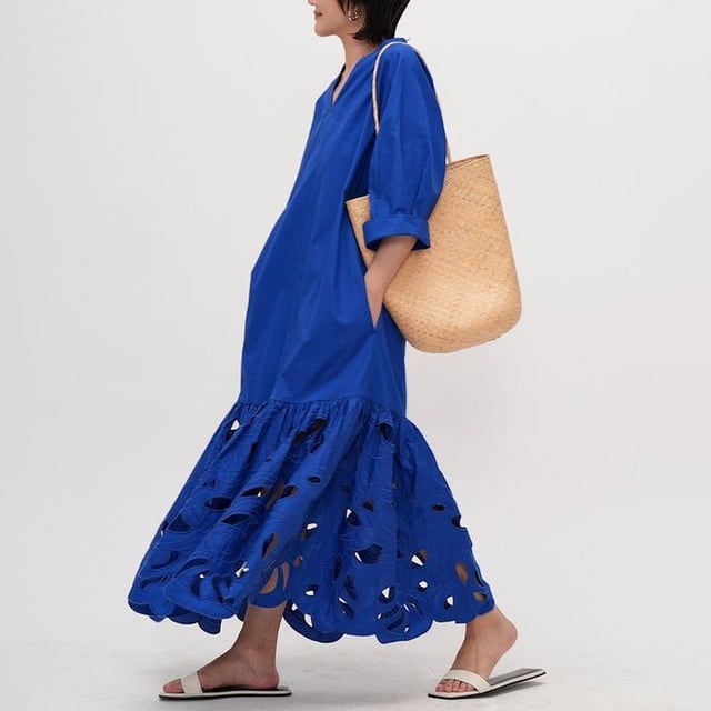 抜け感のあるカットワークデザインがが魅力のワンピース。