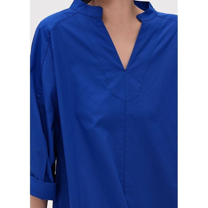 Vネックラインが顔まわりをすっきり見せ、七分袖で季節の変わり目にもぴったりな1枚です。