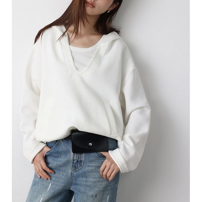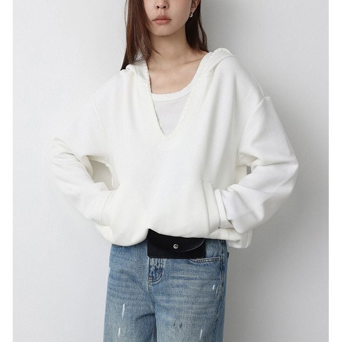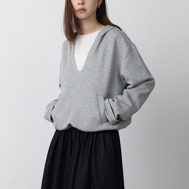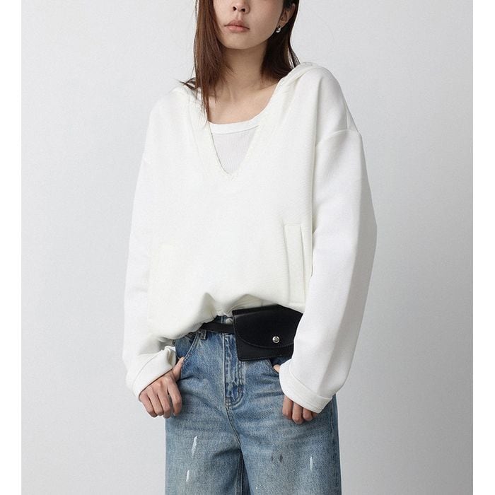 deep v-neck pullover hoodie 14290