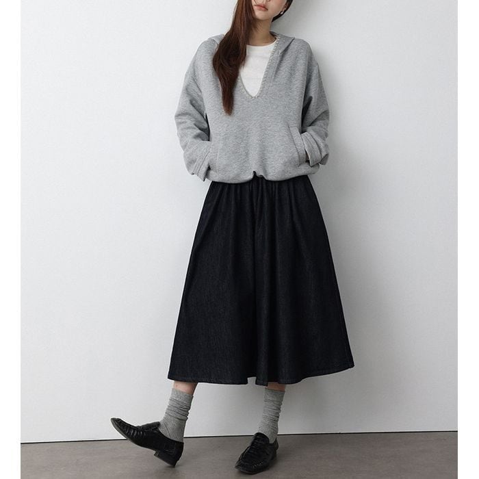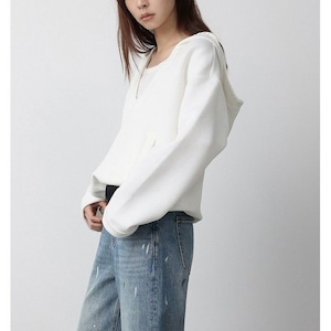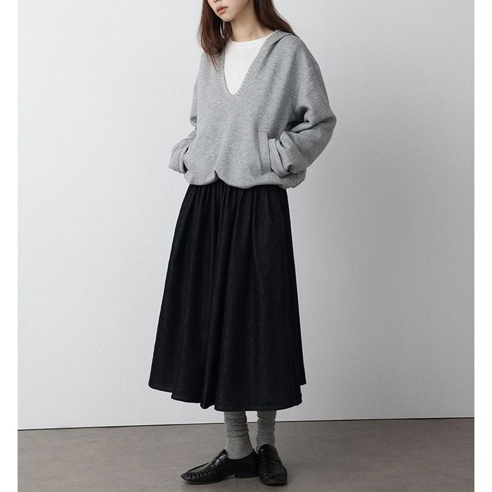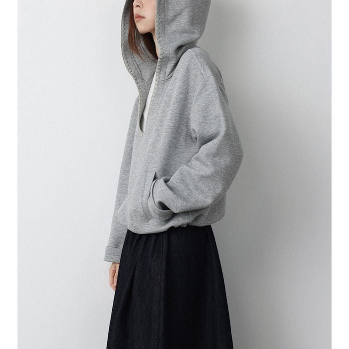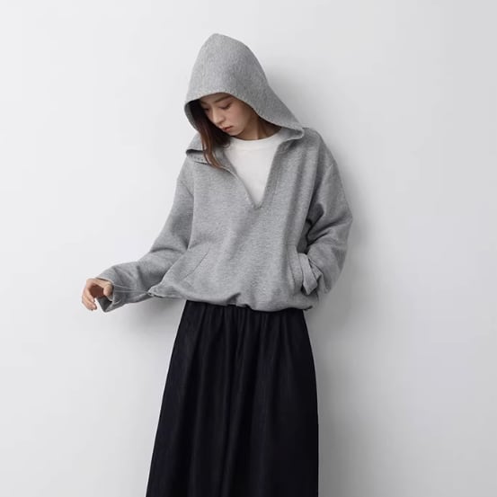 重ね着にぴったりな深いVネックのプルオーバーパーカー。
