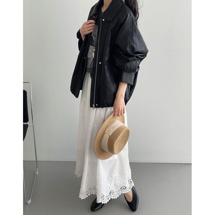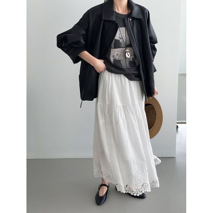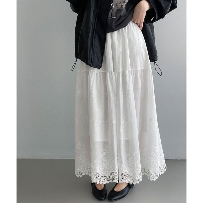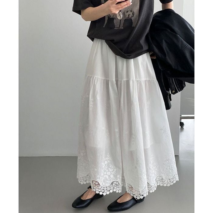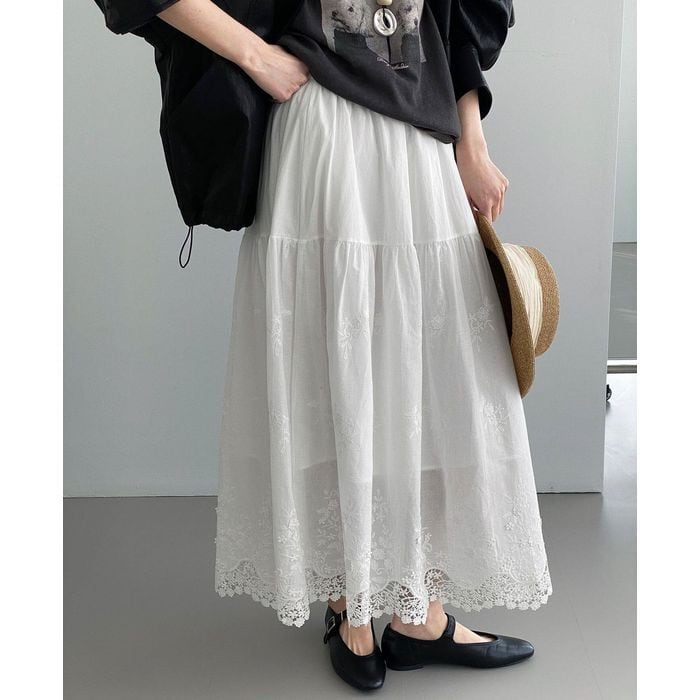 レース刺繍の裾が魅力のロングスカート。