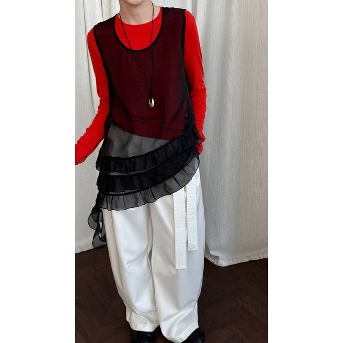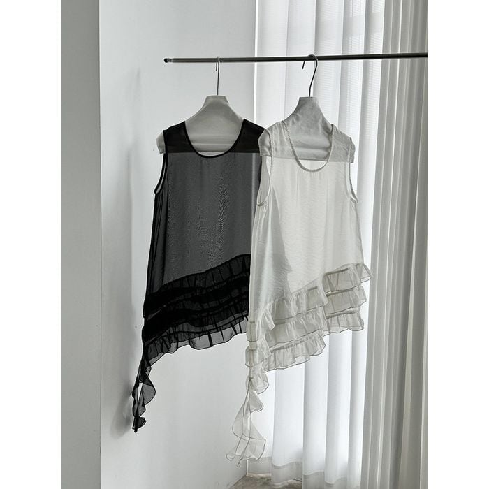 assynmetry sleeveless sheer top 14297