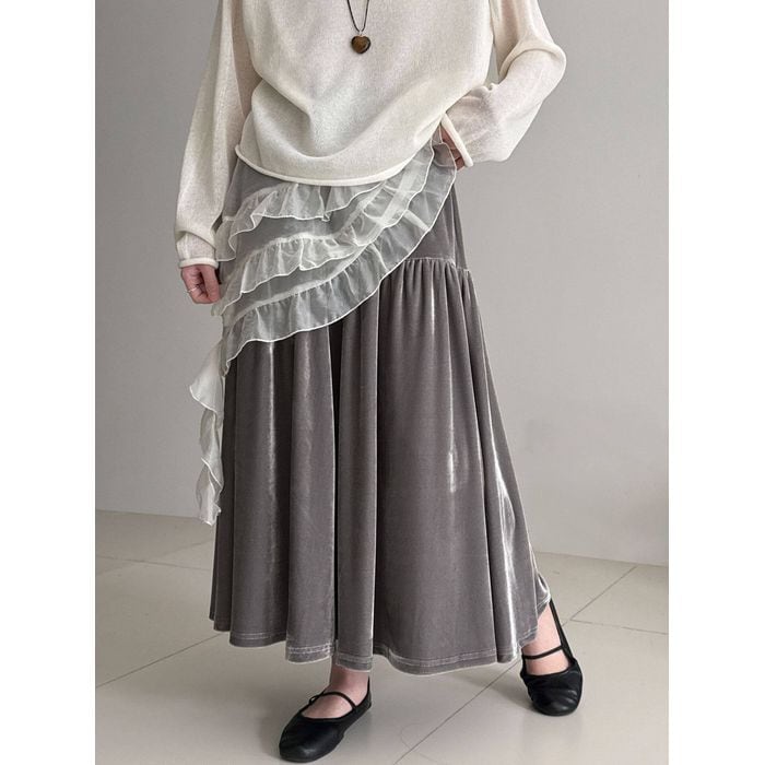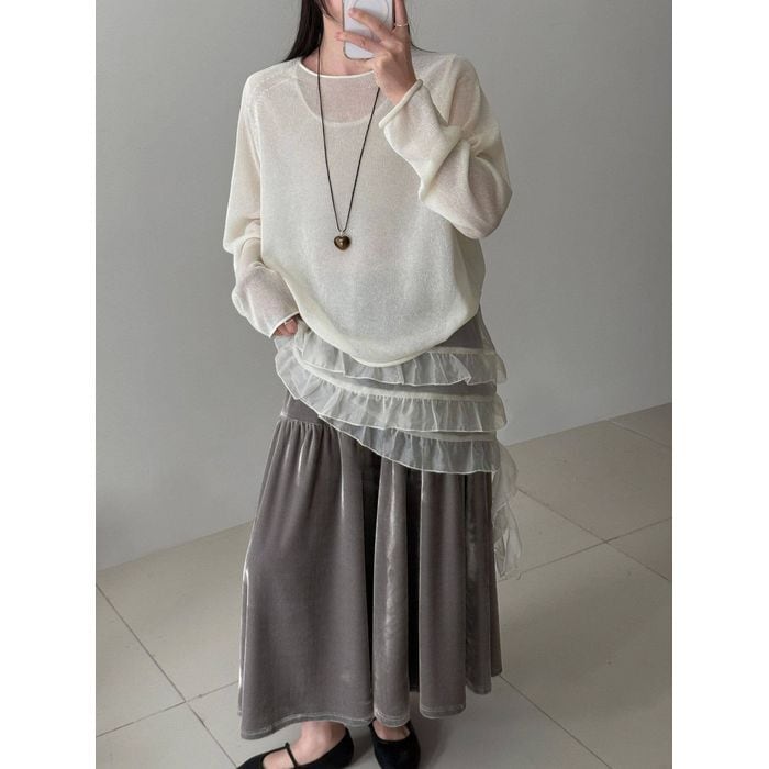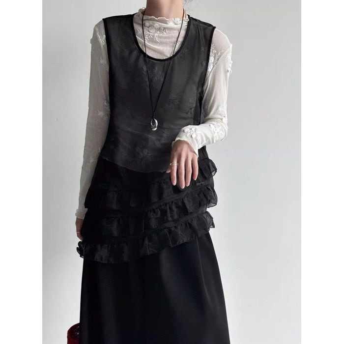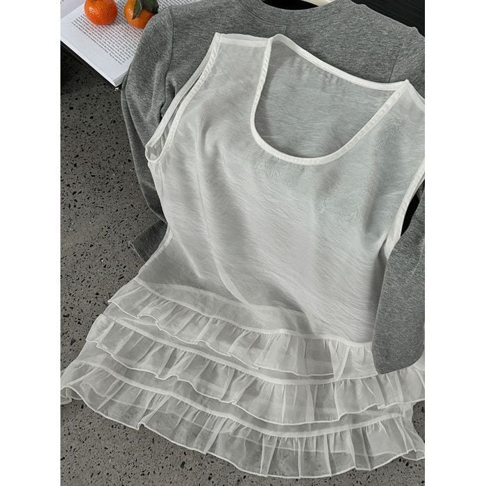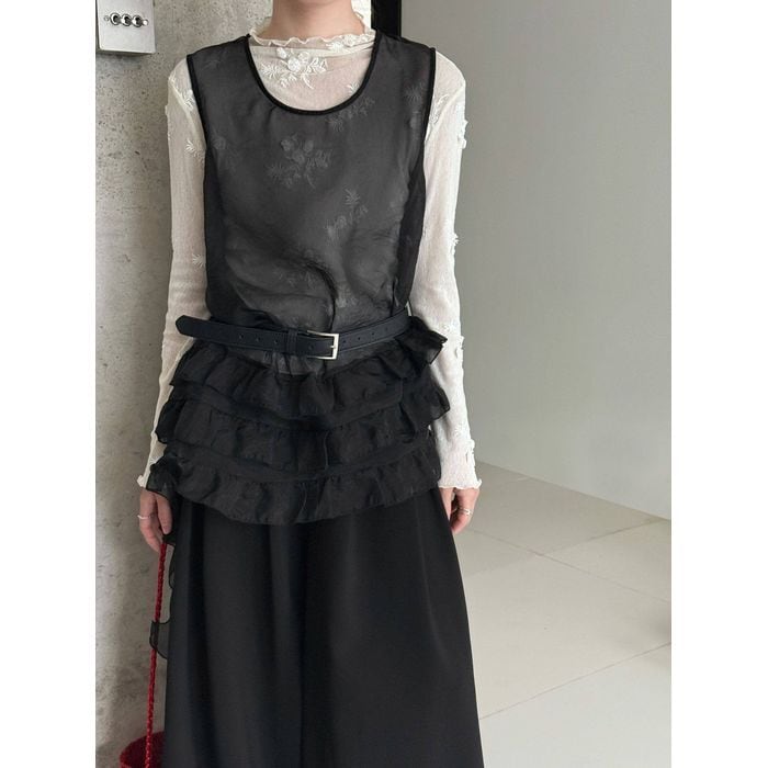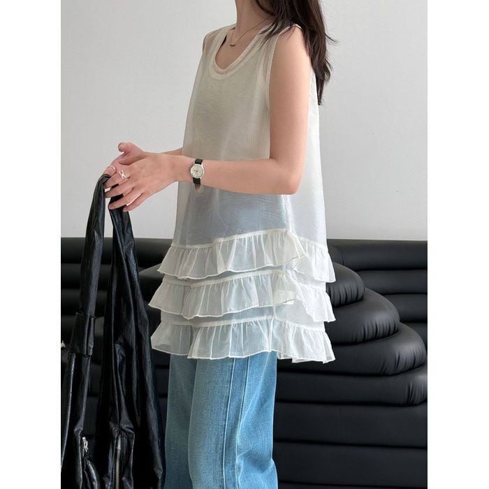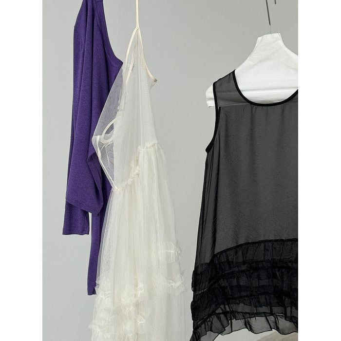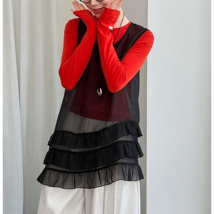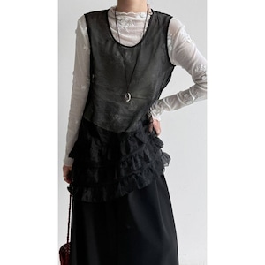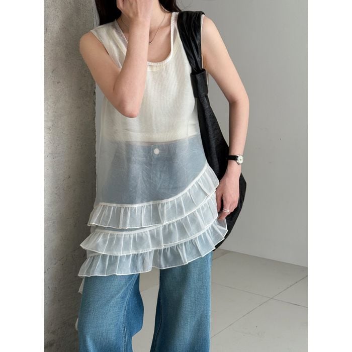 軽やかなチュールを重ねたノースリーブトップス。