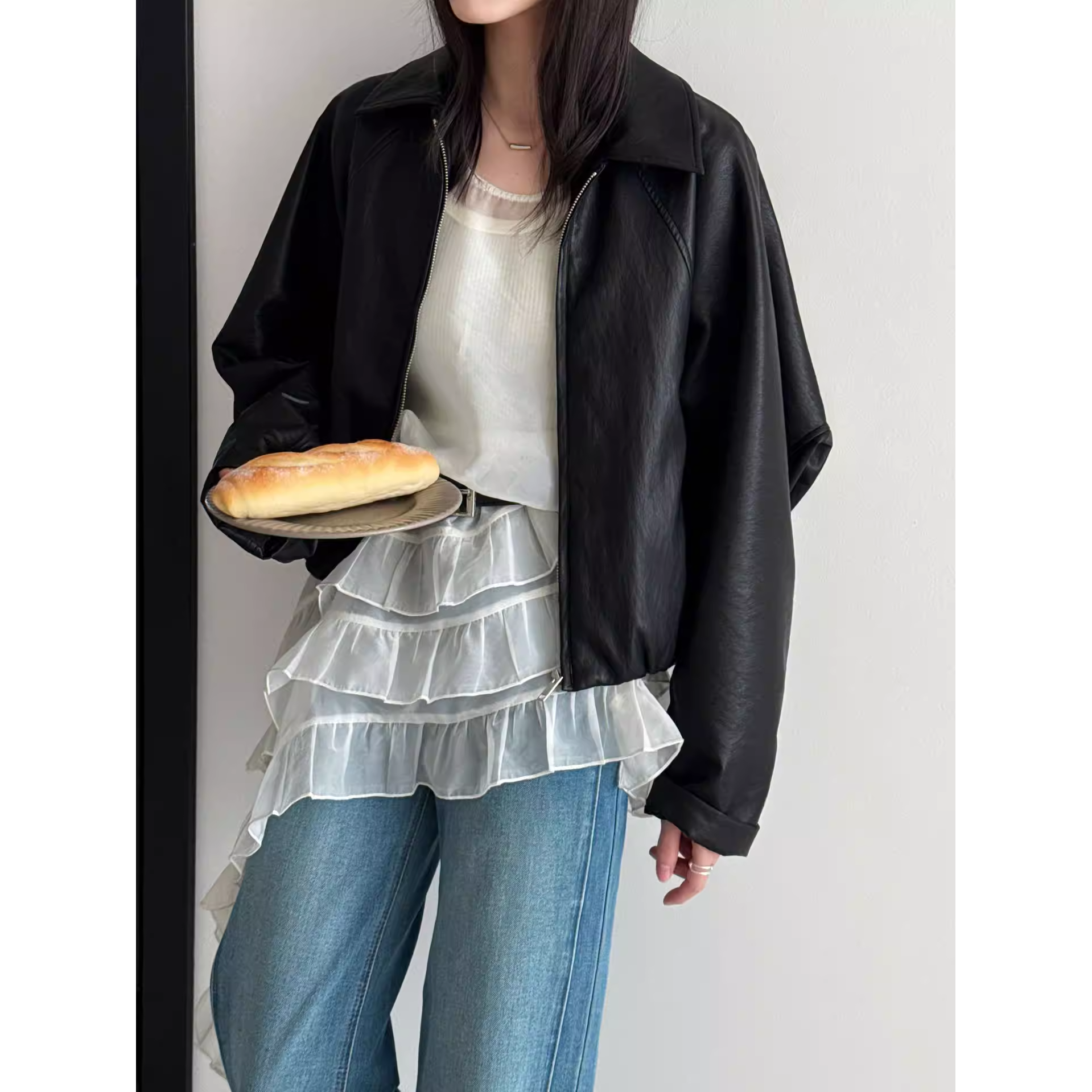 デニムやスラックスなど、さまざまなボトムと合わせやすく、レイヤードスタイルにもぴったりな1枚です。
