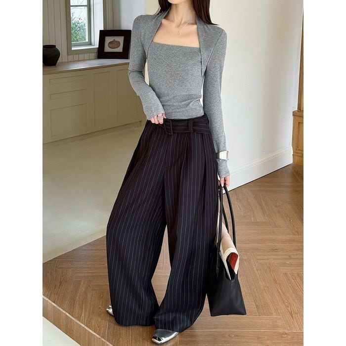 シンプルなトップスを合わせるだけで、洗練された雰囲気に仕上がる一着です。