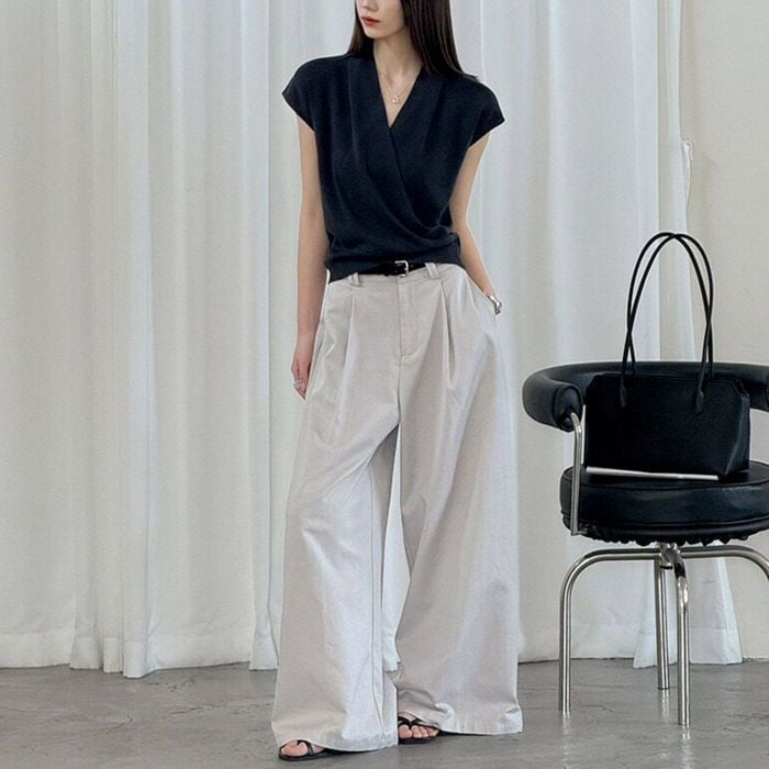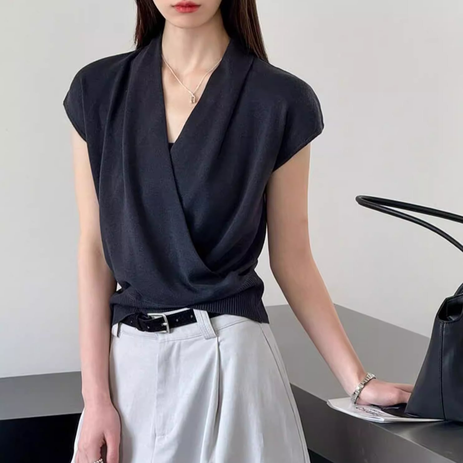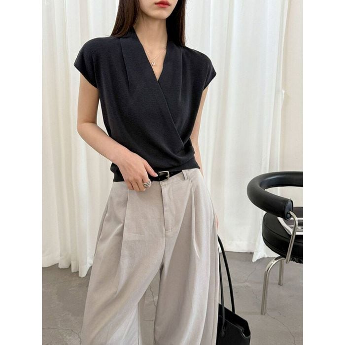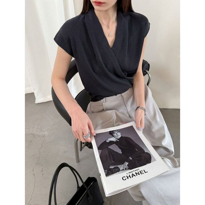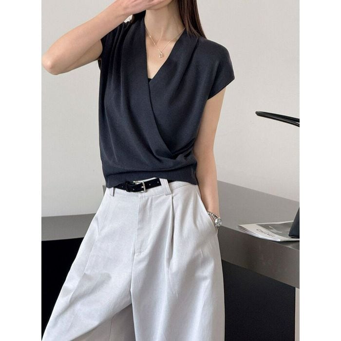 ドレープのあるVネックが魅力のトップス。