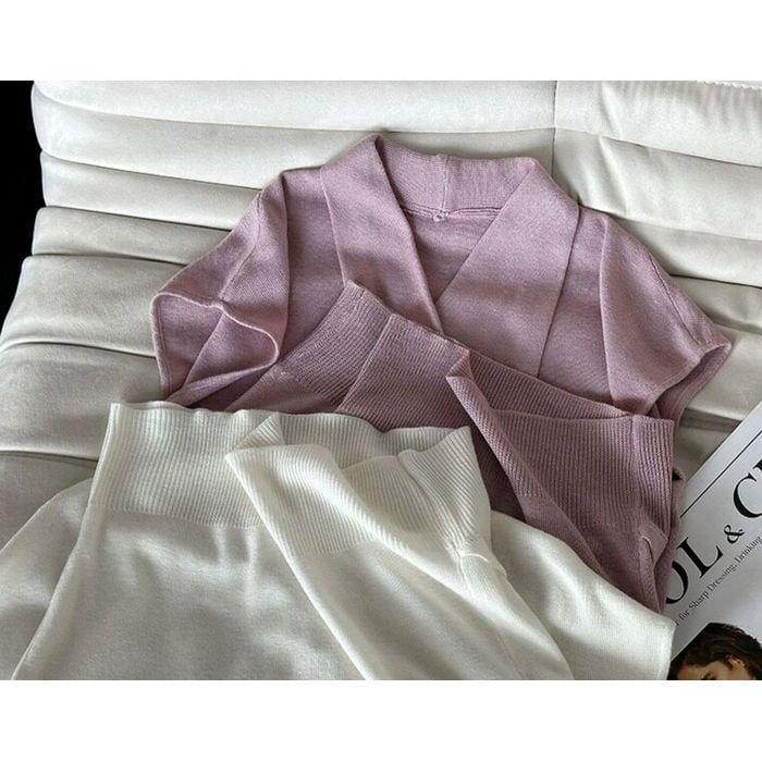 コンパクトな袖が腕まわりをすっきり見せ、タック入りのボトムとも相性の良い1枚です。
