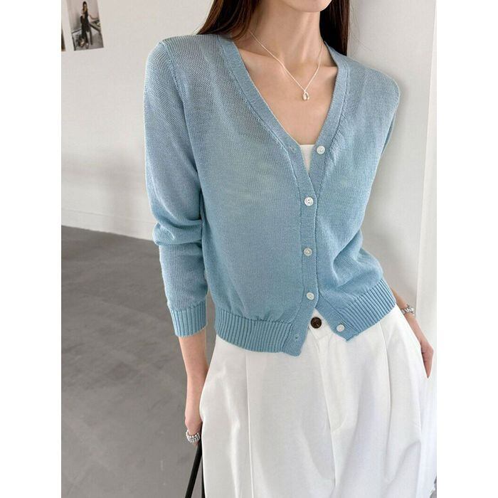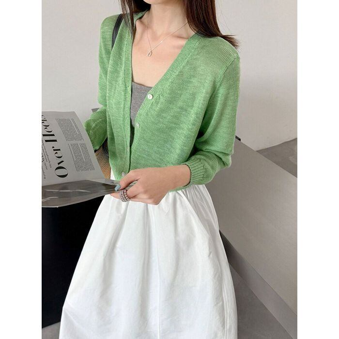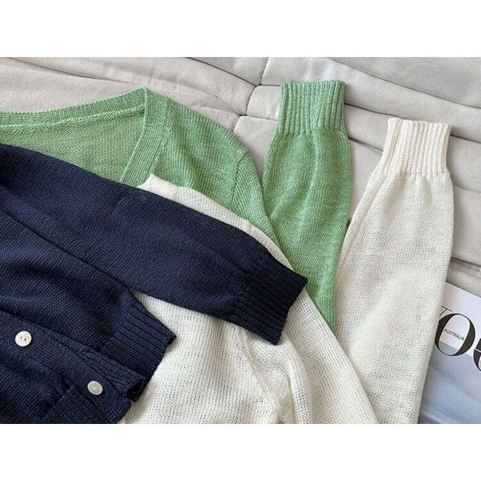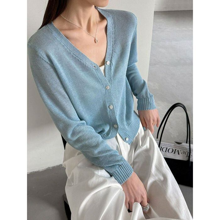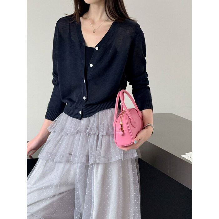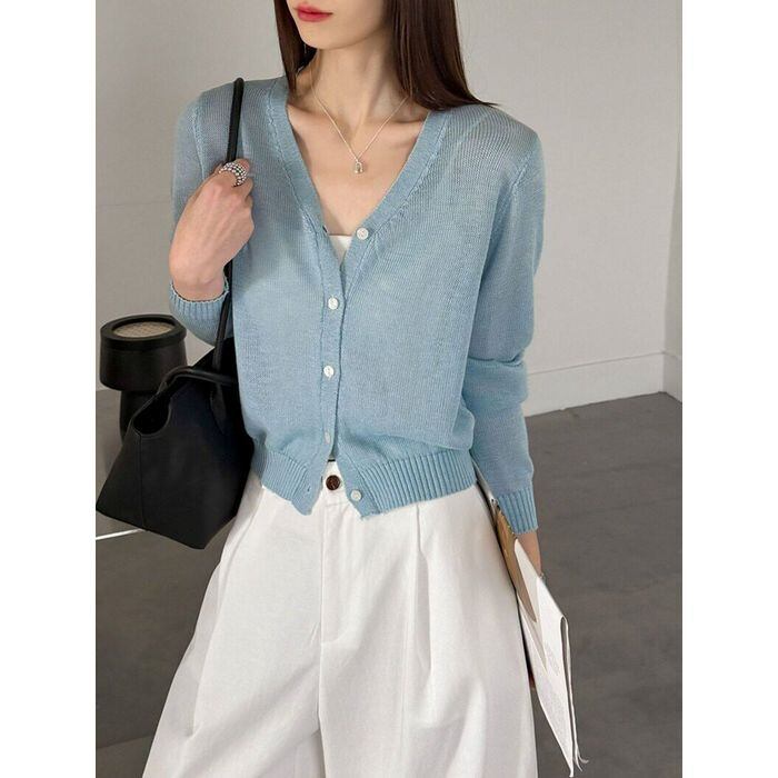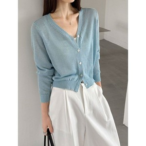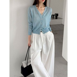 フロントのボタンを留めてトップスとしても、開けて羽織りとしても着られる万能アイテムです。