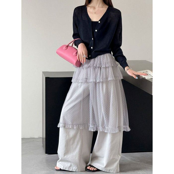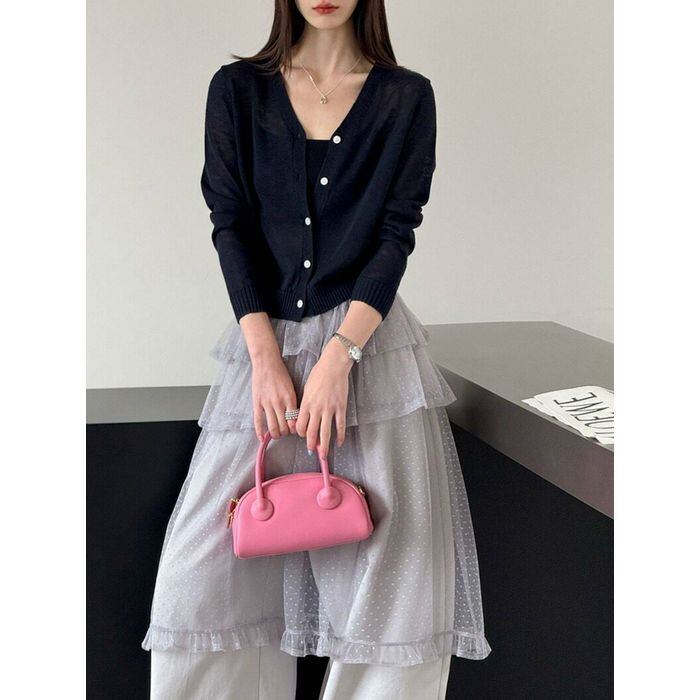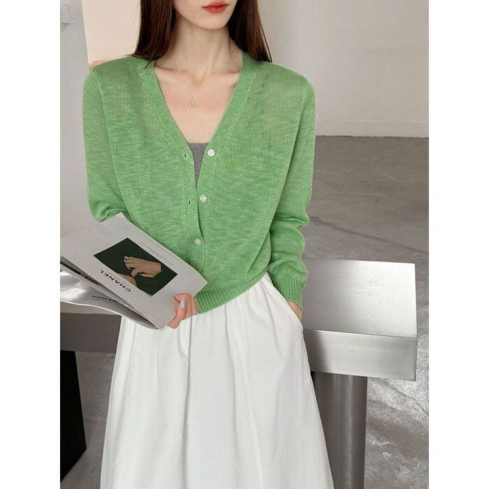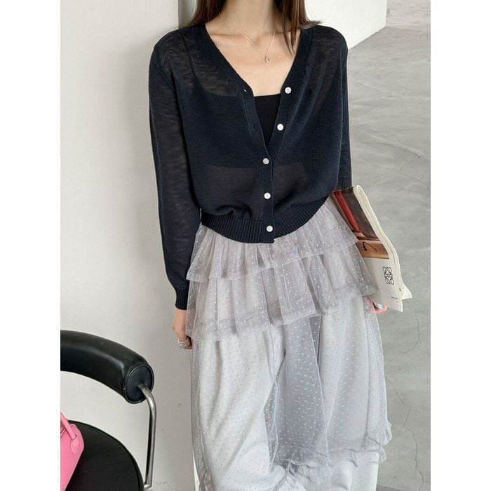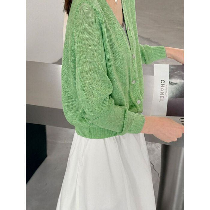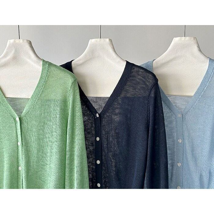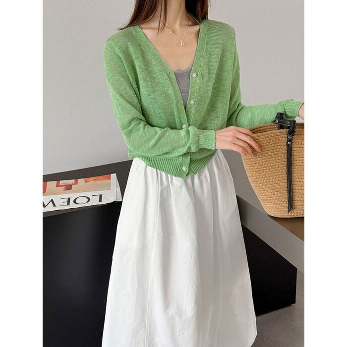 フロントのボタンを留めてトップスとしても、開けて羽織りとしても着られる万能アイテムです。