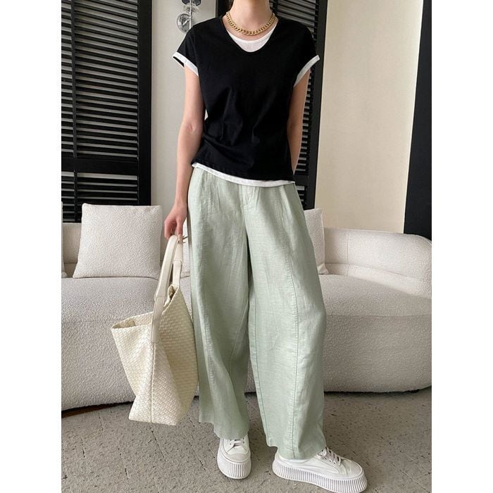 ゆるやかなワイドシルエットが印象的なパンツ。 https://www.abeille.shop/items/138728645