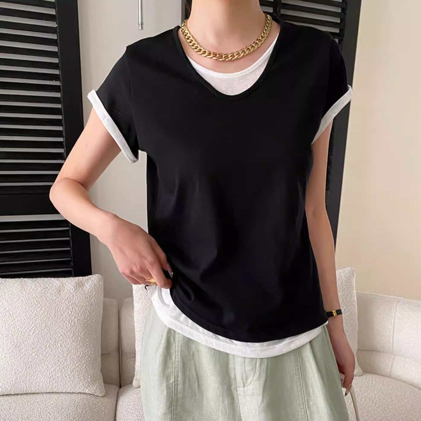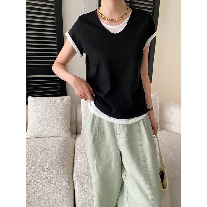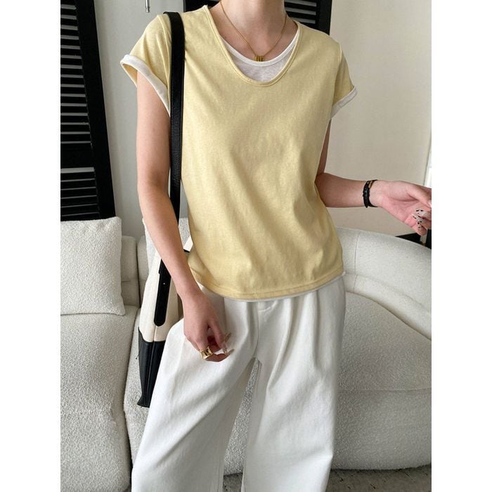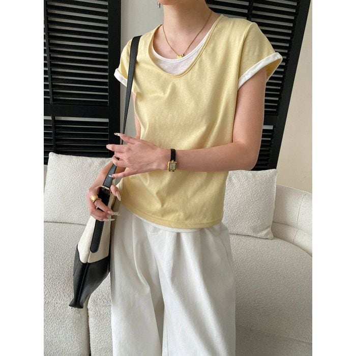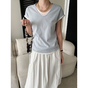 重ね着しているように見えるデザインが特徴のトップス。 スカートにもパンツにも合わせやすい一枚です。 【サイズ】 M 肩幅:35cm 胸囲:92-102cm 着丈:58cm 袖丈:12cm L 肩幅:36cm 胸囲:96-106cm 着丈:59cm 袖丈:13cm ※海外製品につき1-3cm程度誤差がある場合がございます。 【素材】 コットン 【カラー】 ブラック オフホワイト ブルー イエロー グレー ■abeilleでは、多数アイテムを取り揃えております。 下記URLよりぜひチェックしてみて下さい♪ https://www.abeille.shop/ ■今週の人気ランキングはこちら♪ https://www.abeille.shop/categories/3518518 ****ご購入前に必ずお読みください**** https://www.abeille.shop/about 【お届けについて】 こちらの商品は海外店舗より直接発送となる為、 ご入金から「10日~3週間前後」で発送致します。 ■注意事項 ・タイミングによっては 商品在庫切れにより 注文キャンセルとさせていただく恐れもございますので、予めご了承くださいませ。 ・こちらは輸入品となります。日本製とは検品基準が異なる為、 新品未使用品でもごくわずかな汚れや ほつれがある場合もございます。 ・仕入れ工場を変えることがあるため、記載サイズと若干異なる場合がございます。 ・商品の色味は、お手持ちのスマートフォンの画面によって実物と若干異なる場合がございます。 ・イメージ違いやサイズ交換等、お客さまご都合による交換、返品は対応出来かねます。 【お支払方法】 ・クレジットカード決済 (VISA/Master/JCB/AMERICAN EXPRESS) ・キャリア決済 (docomo/au/SoftBank/Y!mobile/UQmobile) ・銀行振込 (三井住友銀行) ・コンビニ決済・Pay-easy ・後払い決済 *ーー*ーー*ーー*ーー*ーー*ーー*ーー* 【abeille】Instagram https://www.instagram.com/abeille_closets/