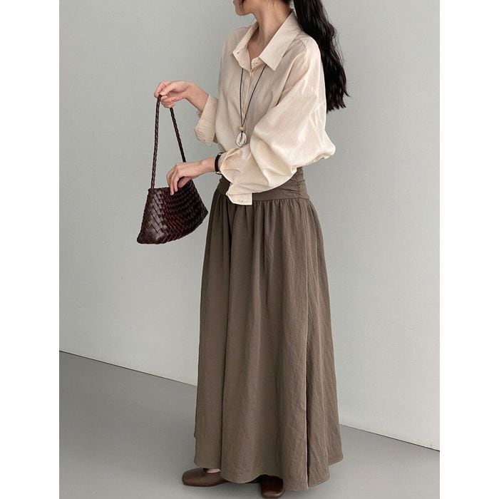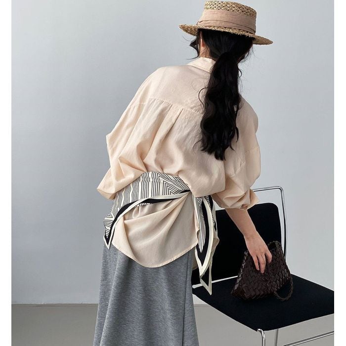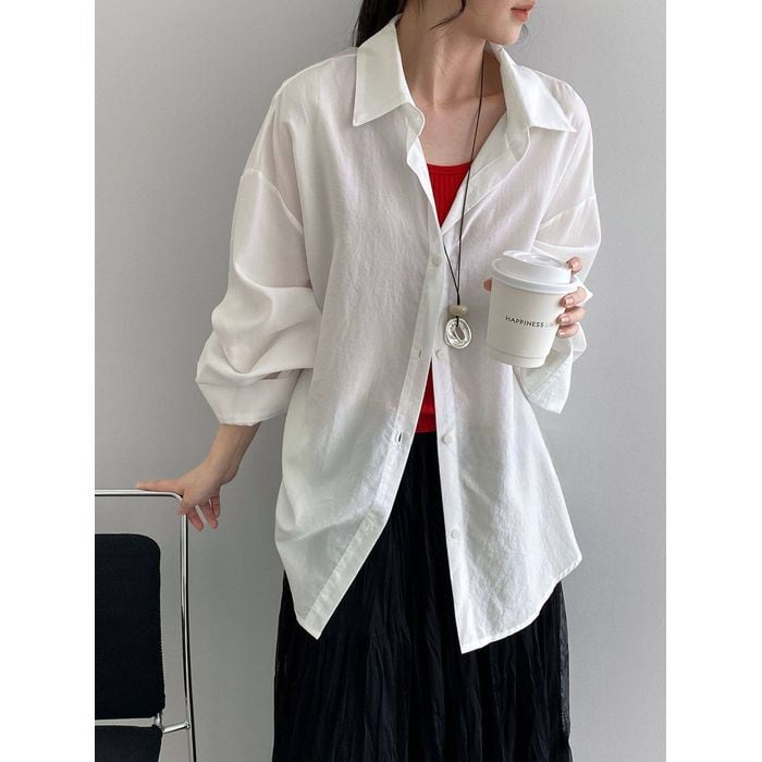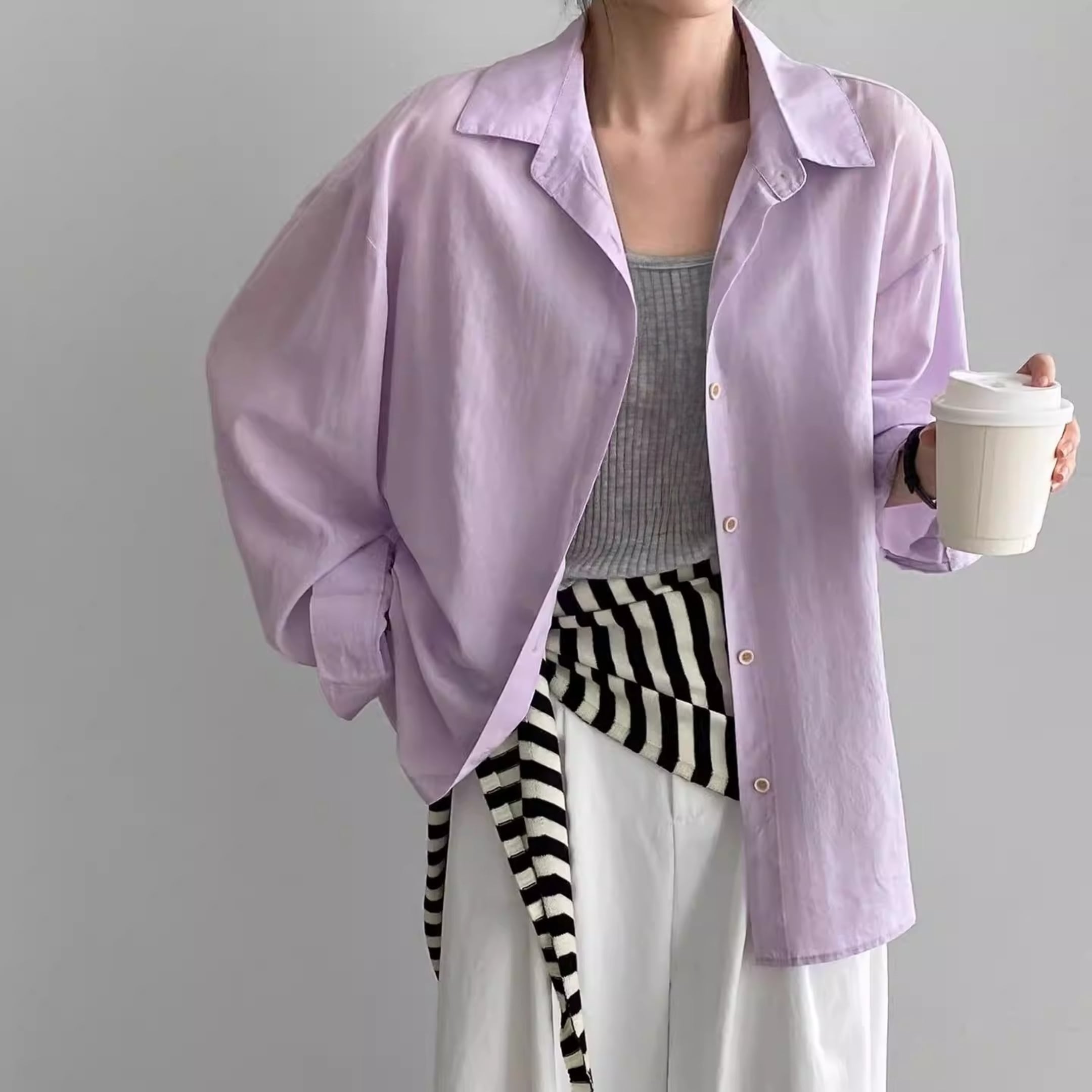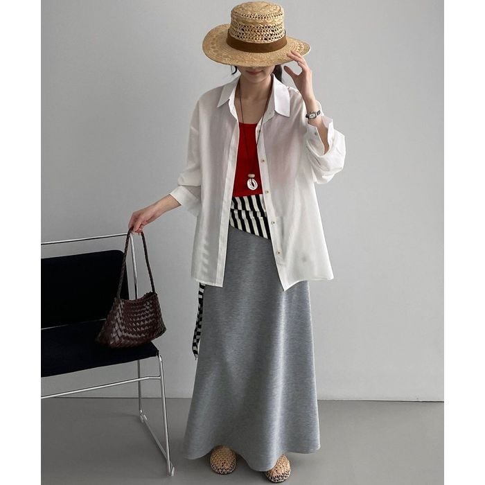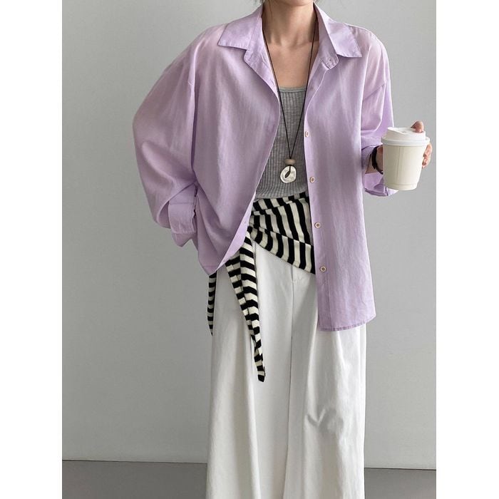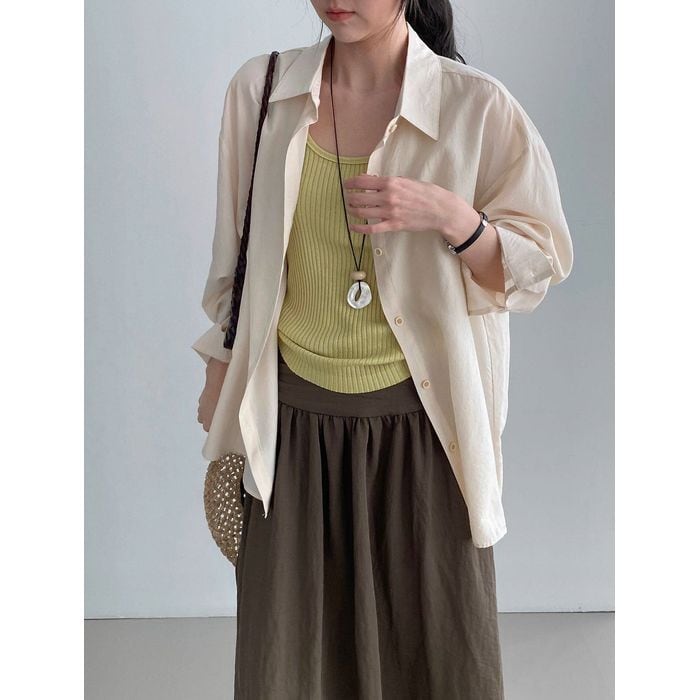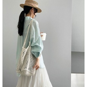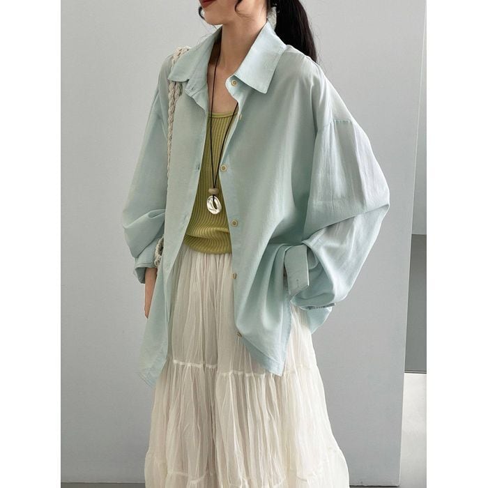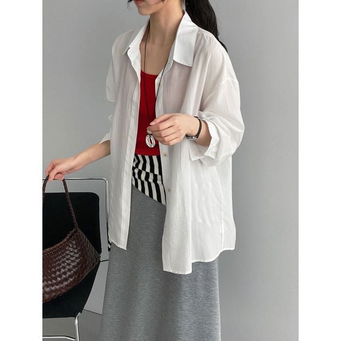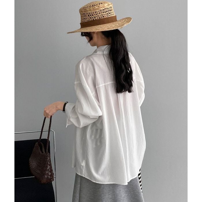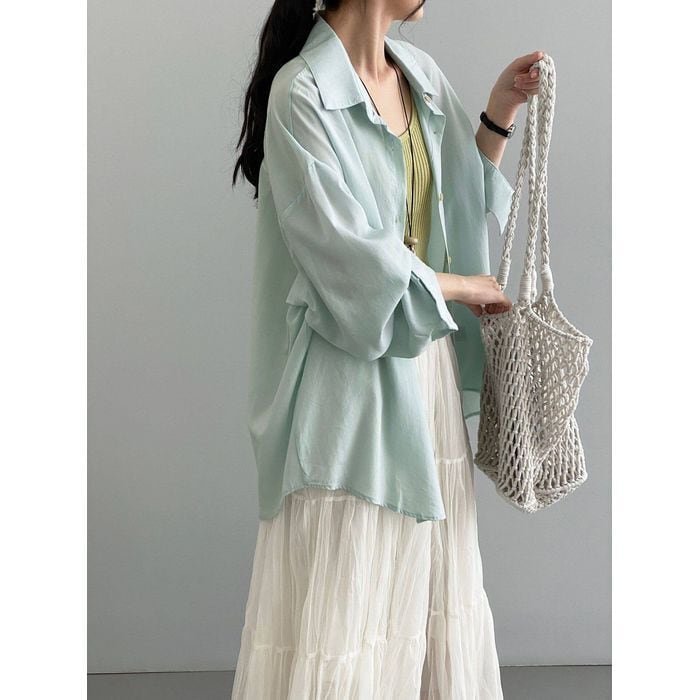 前を開けて羽織りとしても、ボタンを留めてトップスとしても着られる万能な一枚です。
