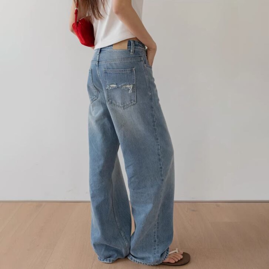 ナチュラルな雰囲気を引き立てるワイドシルエットのデニムパンツ。 https://www.abeille.shop/items/139840965