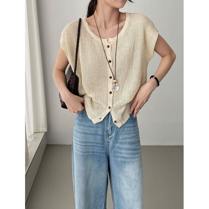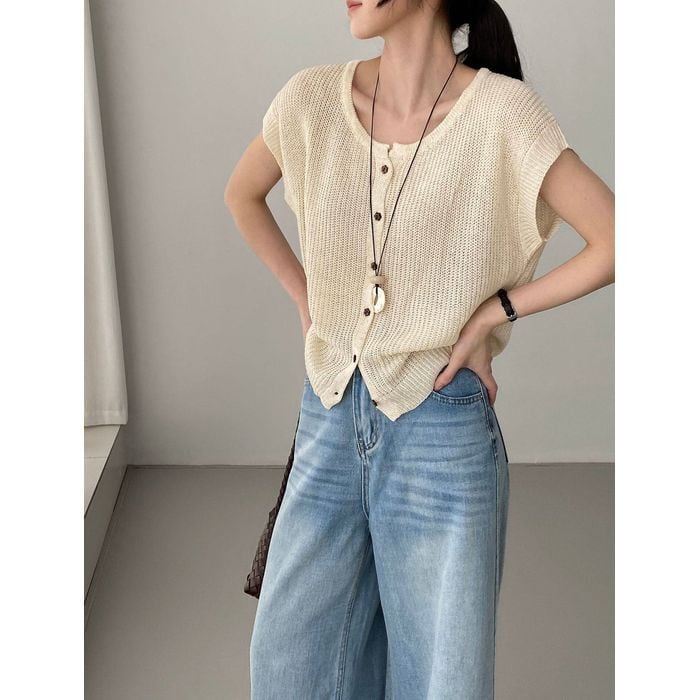 short sleeve knit cardigan 14345