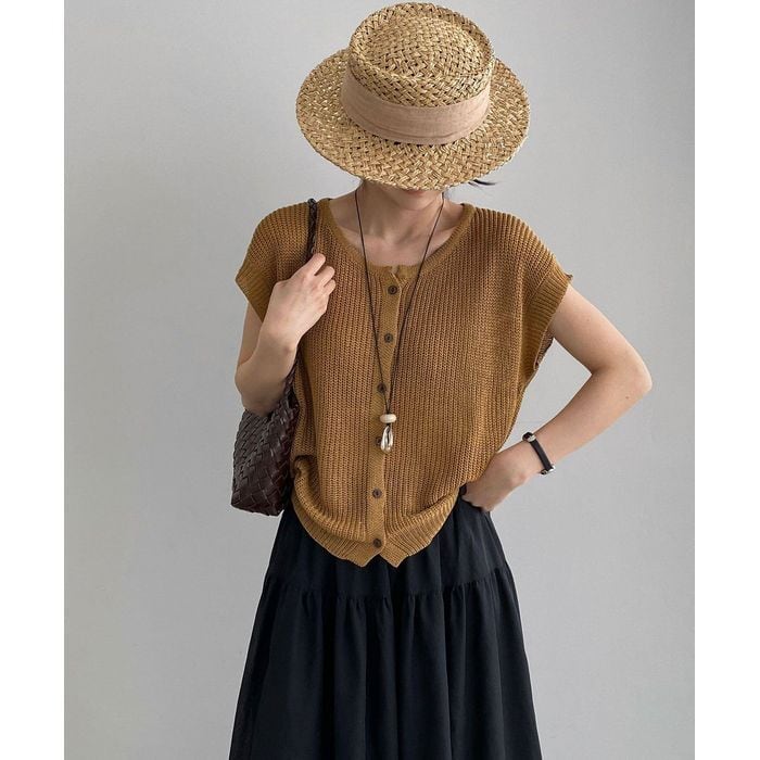 フロントのボタンを留めても外しても着られ、スタイリングの幅が広がる1枚です。