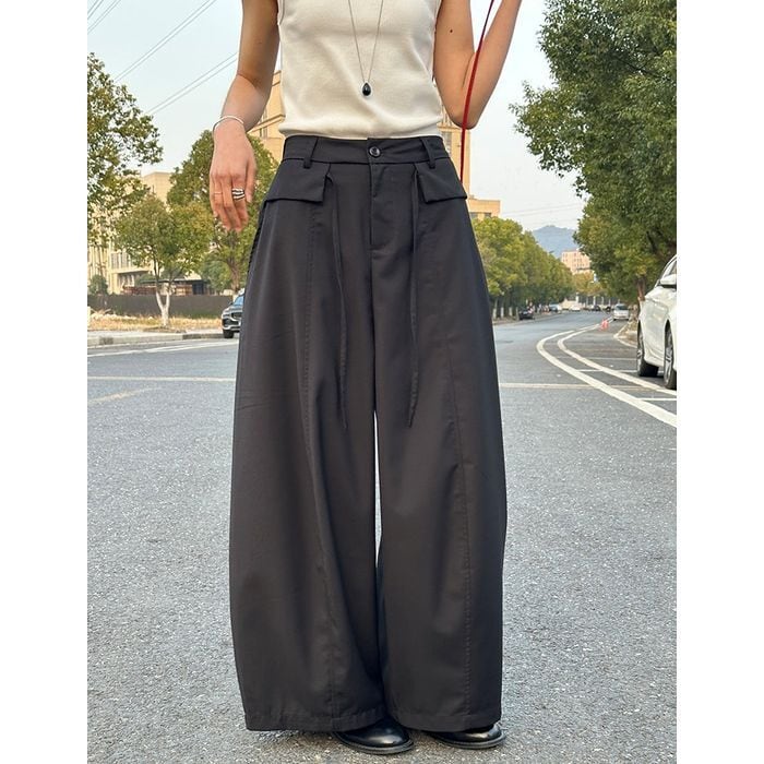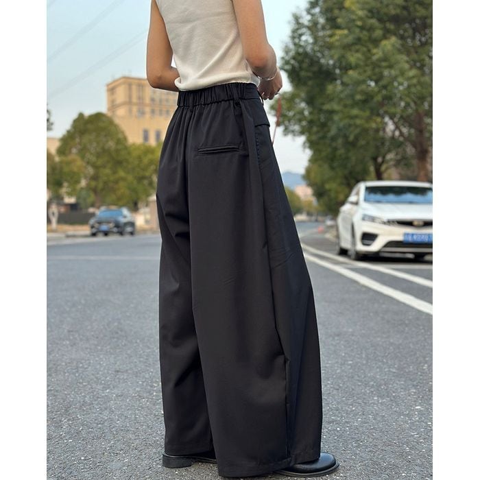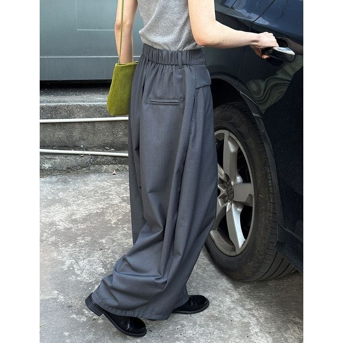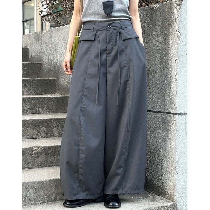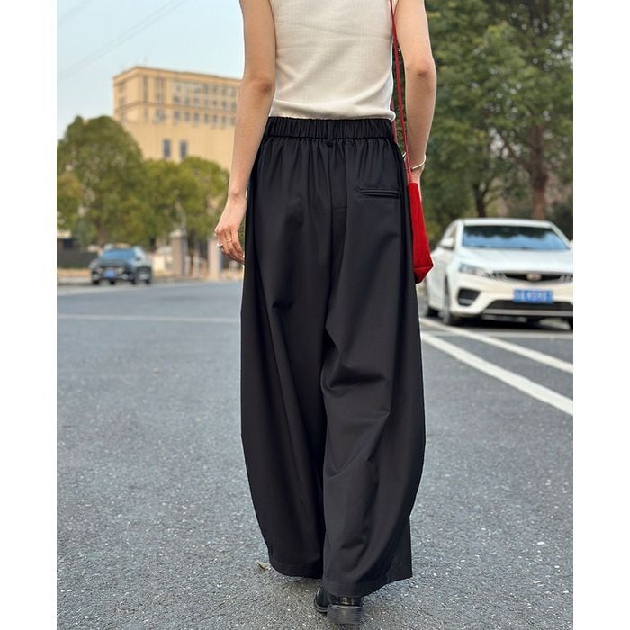 カジュアルになりすぎない素材感が魅力のワイドパンツ。