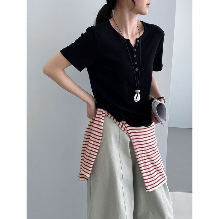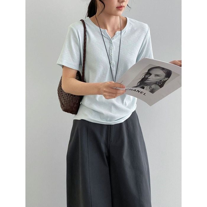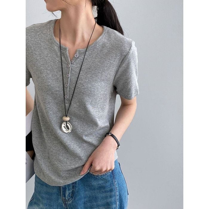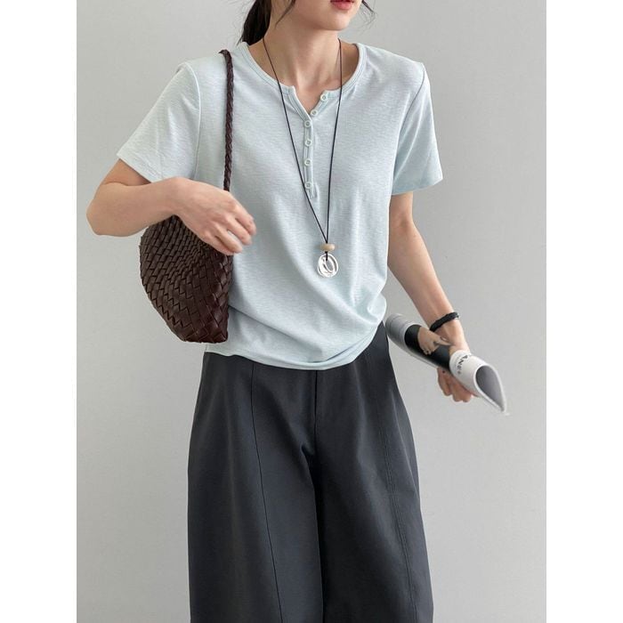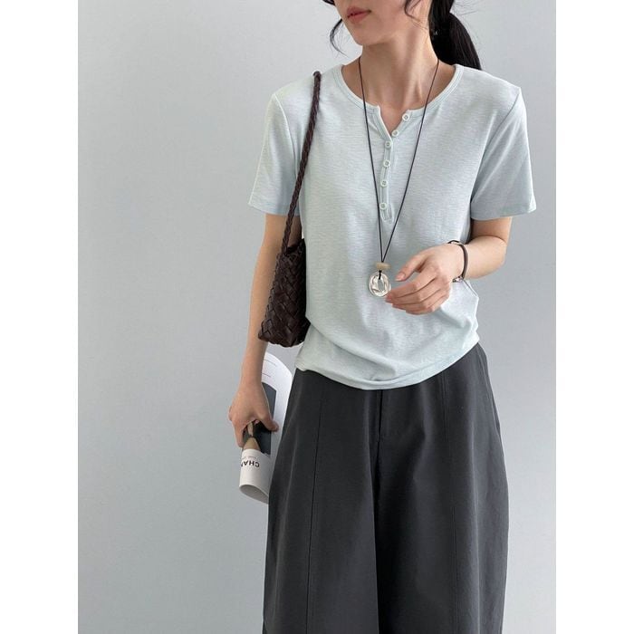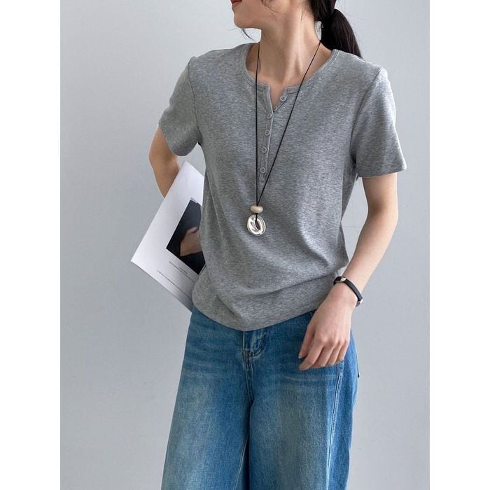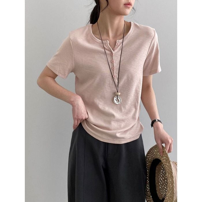 ヘンリーネックデザインのベーシックTシャツ。 パンツやスカートなど幅広いボトムスと相性が良く、デイリーに活躍します。 【サイズ】 Freeサイズ 肩幅:37cm 胸囲:80cm 着丈:58cm 袖丈:16cm ※モデル 163cm ※海外製品につき1-3cm程度誤差がある場合がございます。 【素材】 コットン ナイロン スパンデックス 【カラー】 ピンク オフホワイト ライトブルー グレー ブラック ■abeilleでは、多数アイテムを取り揃えております。 下記URLよりぜひチェックしてみて下さい♪ https://www.abeille.shop/ ■今週の人気ランキングはこちら♪ https://www.abeille.shop/categories/3518518 ****ご購入前に必ずお読みください**** https://www.abeille.shop/about 【お届けについて】 こちらの商品は海外店舗より直接発送となる為、 ご入金から「10日~3週間前後」で発送致します。 ■注意事項 ・タイミングによっては 商品在庫切れにより 注文キャンセルとさせていただく恐れもございますので、予めご了承くださいませ。 ・こちらは輸入品となります。日本製とは検品基準が異なる為、 新品未使用品でもごくわずかな汚れや ほつれがある場合もございます。 ・仕入れ工場を変えることがあるため、記載サイズと若干異なる場合がございます。 ・商品の色味は、お手持ちのスマートフォンの画面によって実物と若干異なる場合がございます。 ・イメージ違いやサイズ交換等、お客さまご都合による交換、返品は対応出来かねます。 【お支払方法】 ・クレジットカード決済 (VISA/Master/JCB/AMERICAN EXPRESS) ・キャリア決済 (docomo/au/SoftBank/Y!mobile/UQmobile) ・銀行振込 (三井住友銀行) ・コンビニ決済・Pay-easy ・後払い決済 *ーー*ーー*ーー*ーー*ーー*ーー*ーー* 【abeille】Instagram https://www.instagram.com/abeille_closets/
