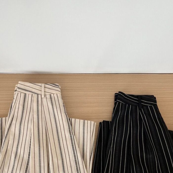 縦ストライプが魅力のワイドパンツ。