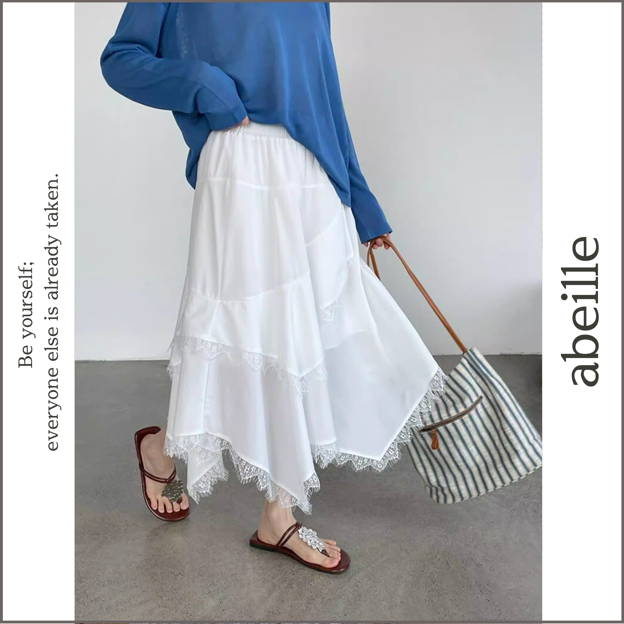透け感のあるレースの裾が魅力のスカート。