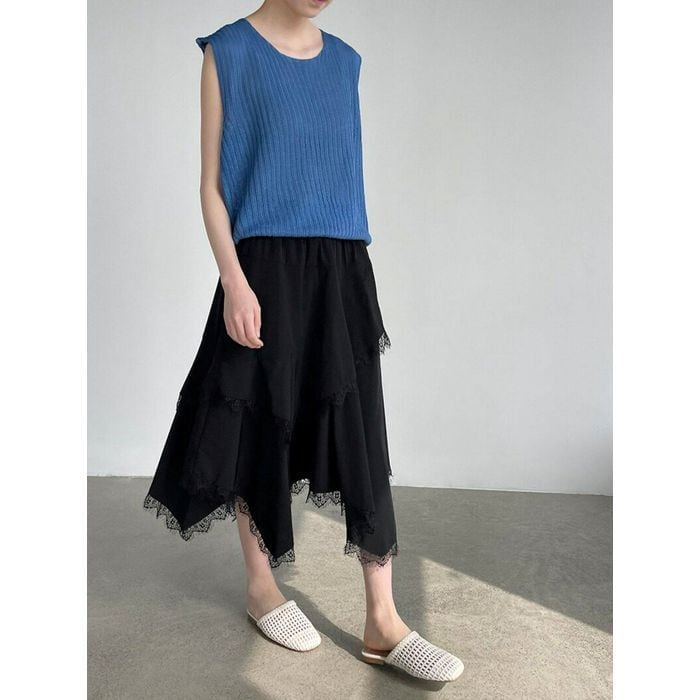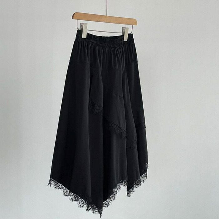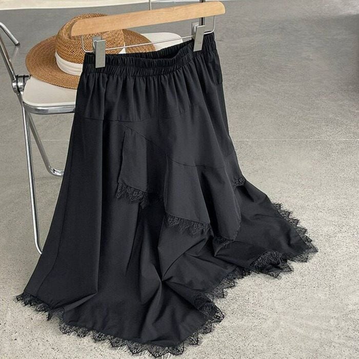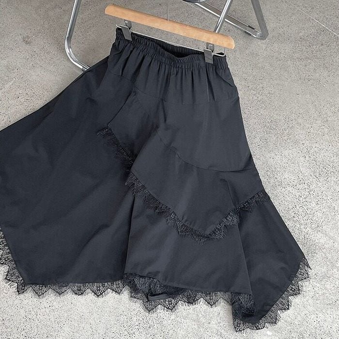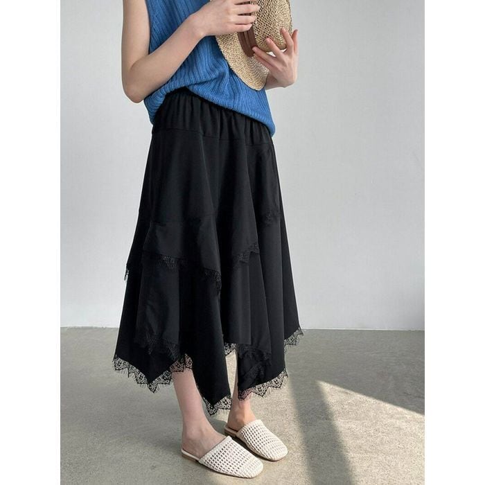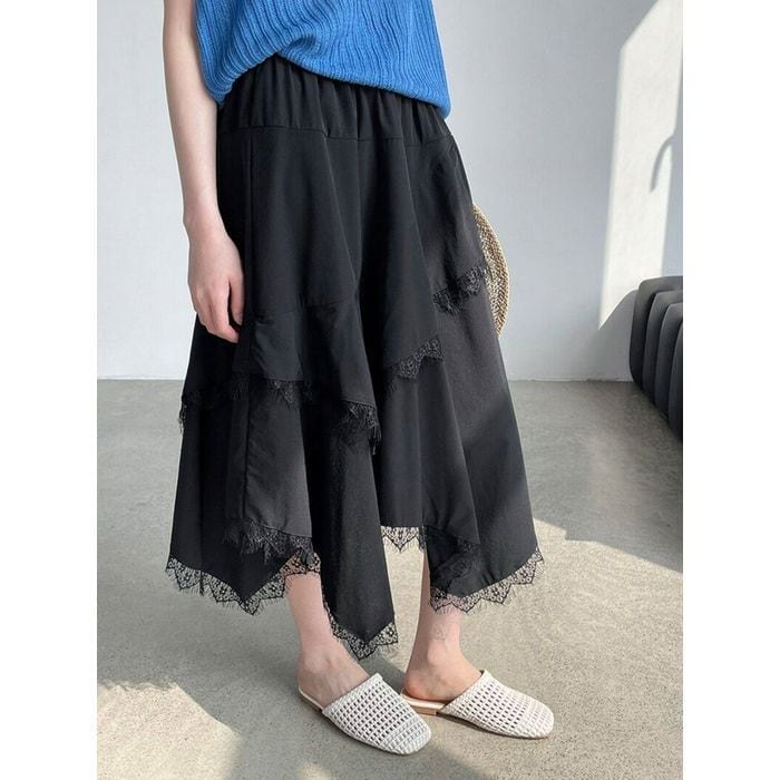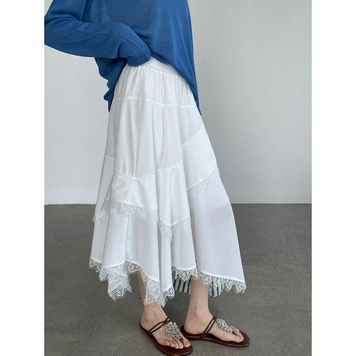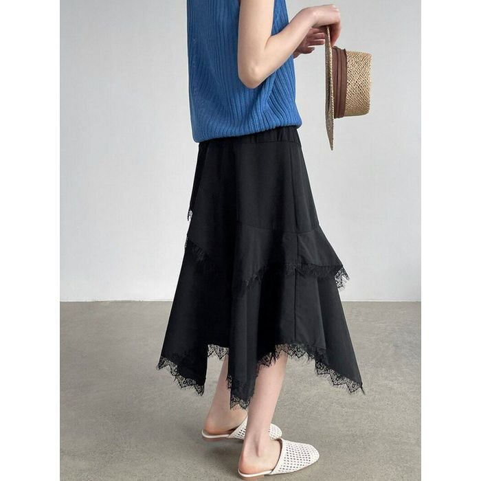 irregular lace-hem skirt 14356