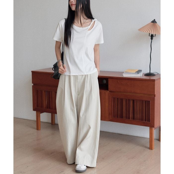 アシンメトリーなデザインが魅力のTシャツ。 一枚でスタイリングがきまり、抜け感のあるカジュアルに仕上がります。 【サイズ】 S 肩幅:39cm 胸囲:90cm 着丈:51cm 袖丈:15cm M 肩幅:40cm 胸囲:92cm 着丈:52cm 袖丈:16cm L 肩幅:41cm 胸囲:94cm 着丈:53cm 袖丈:17cm ※モデル 164cm Mサイズ ※海外製品につき1-3cm程度誤差がある場合がございます。 【素材】 コットン ポリエステル 【カラー】 オフホワイト ブルー グレー ブラック ■abeilleでは、多数アイテムを取り揃えております。 下記URLよりぜひチェックしてみて下さい♪ https://www.abeille.shop/ ■今週の人気ランキングはこちら♪ https://www.abeille.shop/categories/3518518 ****ご購入前に必ずお読みください**** https://www.abeille.shop/about 【お届けについて】 こちらの商品は海外店舗より直接発送となる為、 ご入金から「10日~3週間前後」で発送致します。 ■注意事項 ・タイミングによっては 商品在庫切れにより 注文キャンセルとさせていただく恐れもございますので、予めご了承くださいませ。 ・こちらは輸入品となります。日本製とは検品基準が異なる為、 新品未使用品でもごくわずかな汚れや ほつれがある場合もございます。 ・仕入れ工場を変えることがあるため、記載サイズと若干異なる場合がございます。 ・商品の色味は、お手持ちのスマートフォンの画面によって実物と若干異なる場合がございます。 ・イメージ違いやサイズ交換等、お客さまご都合による交換、返品は対応出来かねます。 【お支払方法】 ・クレジットカード決済 (VISA/Master/JCB/AMERICAN EXPRESS) ・キャリア決済 (docomo/au/SoftBank/Y!mobile/UQmobile) ・銀行振込 (三井住友銀行) ・コンビニ決済・Pay-easy ・後払い決済 *ーー*ーー*ーー*ーー*ーー*ーー*ーー* 【abeille】Instagram https://www.instagram.com/abeille_closets/