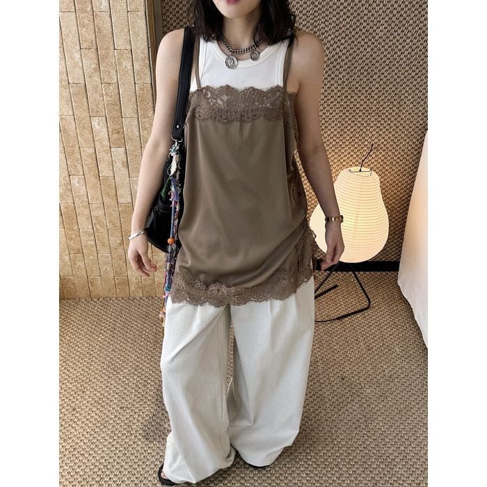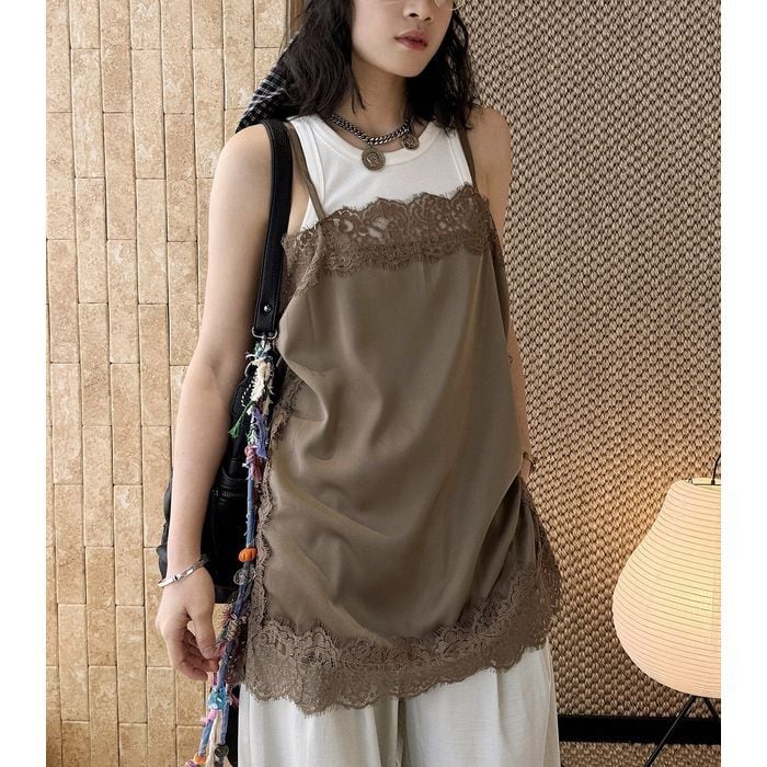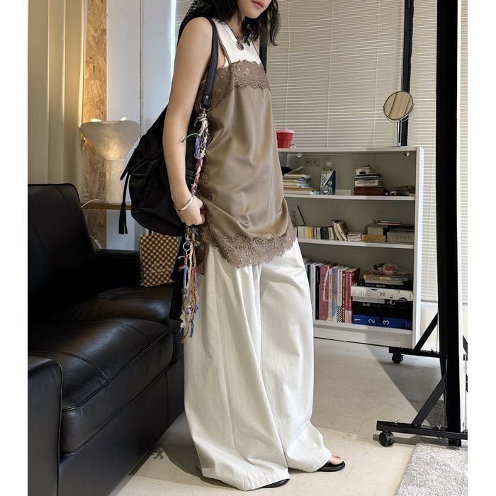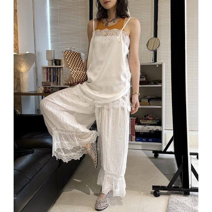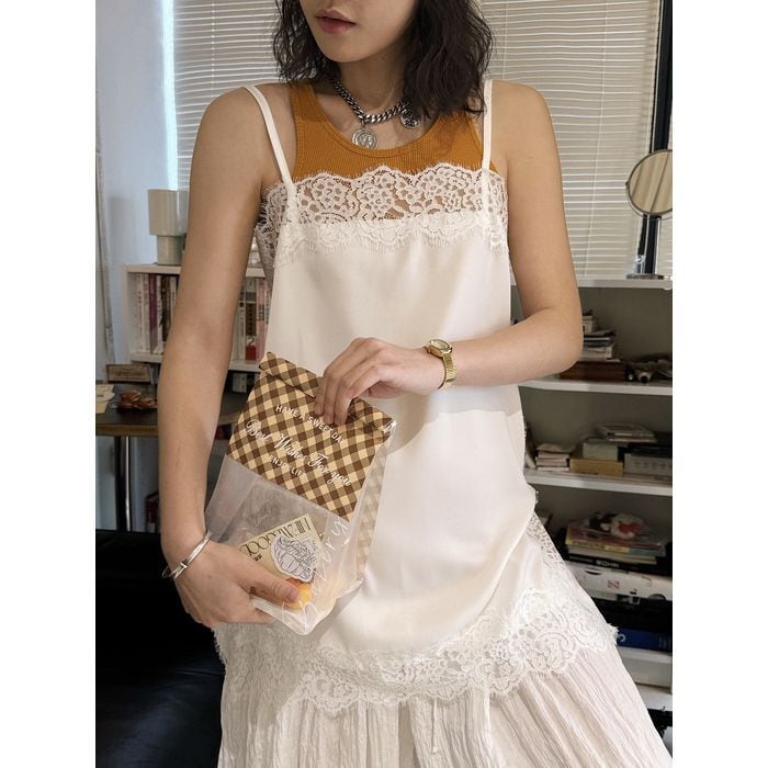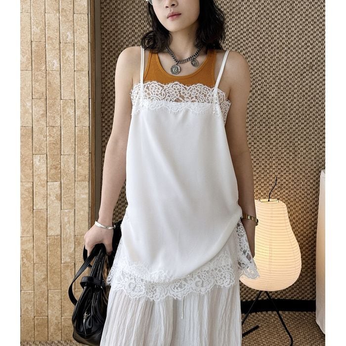レースがアクセントになり、重ね着でも主役になるキャミソール。