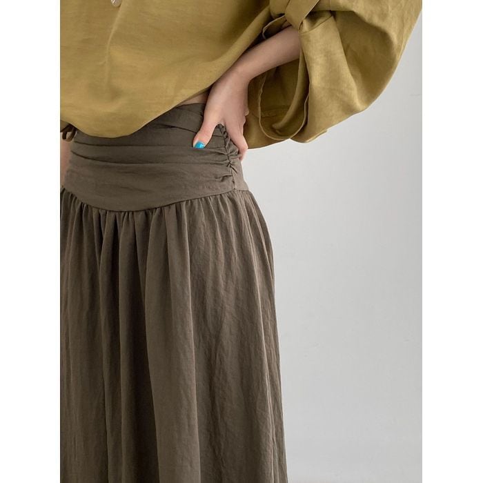 広がりすぎないフレアがきれいなロングスカート。