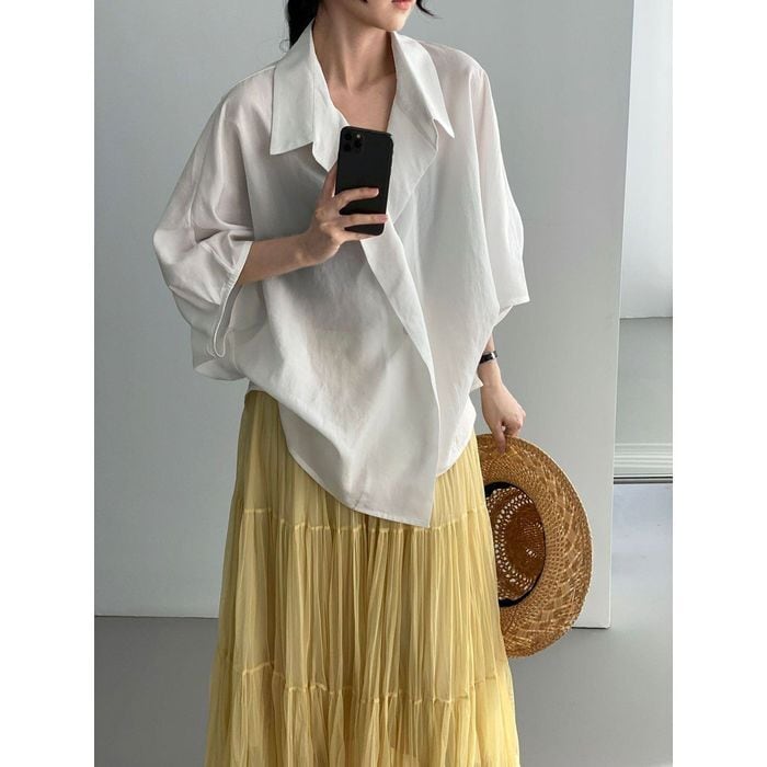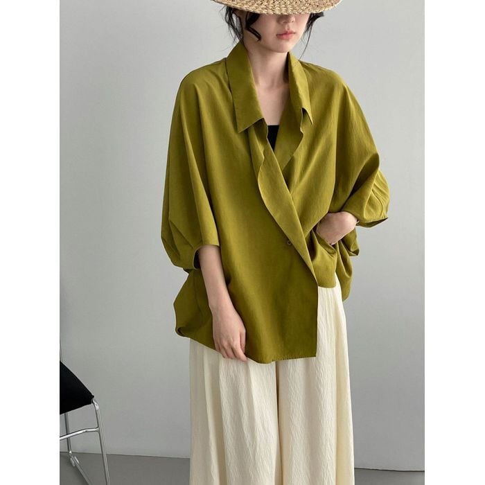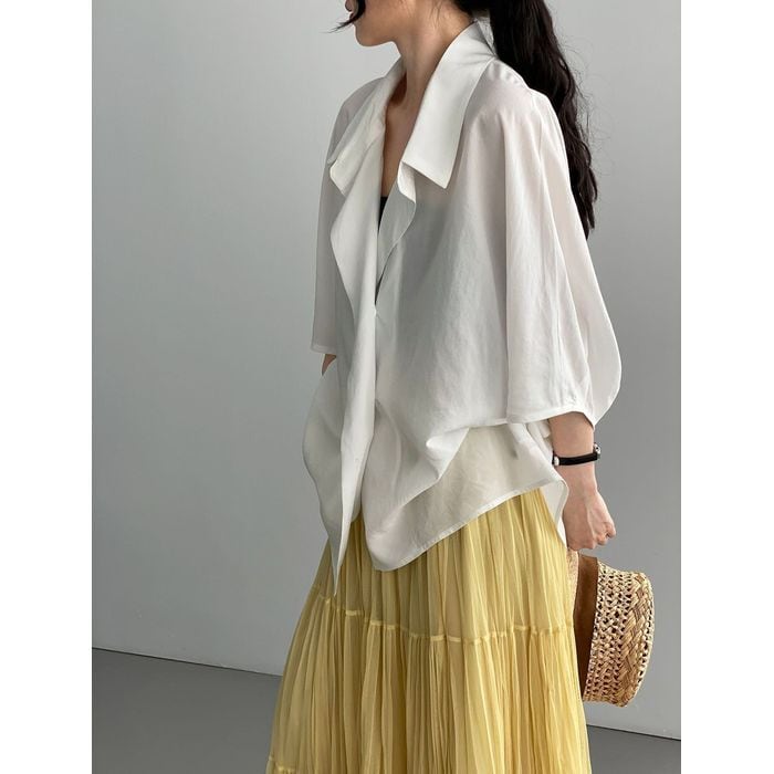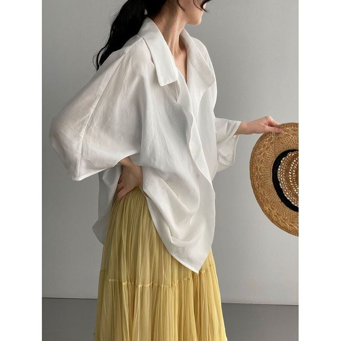 抜け感のある衿元とゆったりシルエットが魅力のシャツ。