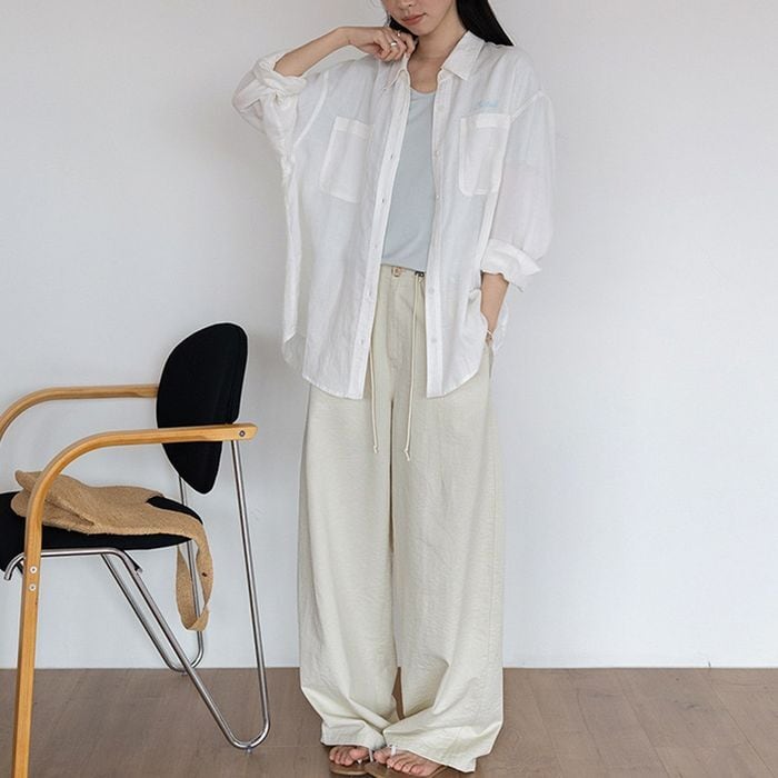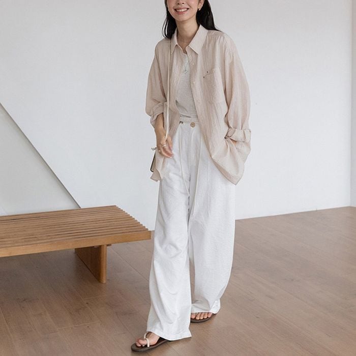 ゆったりとしたシルエットのシアーシャツ。 https://www.abeille.shop/items/142390830
