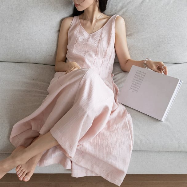 Vネックとノースリーブデザインが涼しげなノースリーブワンピース。 ウエストに紐が付いており、シルエットの調整が可能な一枚です。 【サイズ】 XS 肩幅:30cm 胸囲:87cm 着丈:108cm S 肩幅:30cm 胸囲:87cm 着丈:118cm M 肩幅:31cm 胸囲:91cm 着丈:121cm L 肩幅:32cm 胸囲:95cm 着丈:124cm ※モデル 168cm Lサイズ着用 ※海外製品につき1-3cm程度誤差がある場合がございます。 【素材】 リヨセル ナイロン ポリエステル 【カラー】 オフホワイト ピンク ■abeilleでは、多数アイテムを取り揃えております。 下記URLよりぜひチェックしてみて下さい♪ https://www.abeille.shop/ ■今週の人気ランキングはこちら♪ https://www.abeille.shop/categories/3518518 ****ご購入前に必ずお読みください**** https://www.abeille.shop/about 【お届けについて】 こちらの商品は海外店舗より直接発送となる為、 ご入金から「10日~3週間前後」で発送致します。 ■注意事項 ・タイミングによっては 商品在庫切れにより 注文キャンセルとさせていただく恐れもございますので、予めご了承くださいませ。 ・こちらは輸入品となります。日本製とは検品基準が異なる為、 新品未使用品でもごくわずかな汚れや ほつれがある場合もございます。 ・仕入れ工場を変えることがあるため、記載サイズと若干異なる場合がございます。 ・商品の色味は、お手持ちのスマートフォンの画面によって実物と若干異なる場合がございます。 ・イメージ違いやサイズ交換等、お客さまご都合による交換、返品は対応出来かねます。 【お支払方法】 ・クレジットカード決済 (VISA/Master/JCB/AMERICAN EXPRESS) ・キャリア決済 (docomo/au/SoftBank/Y!mobile/UQmobile) ・銀行振込 (三井住友銀行) ・コンビニ決済・Pay-easy ・後払い決済 *ーー*ーー*ーー*ーー*ーー*ーー*ーー* 【abeille】Instagram https://www.instagram.com/abeille_closets/