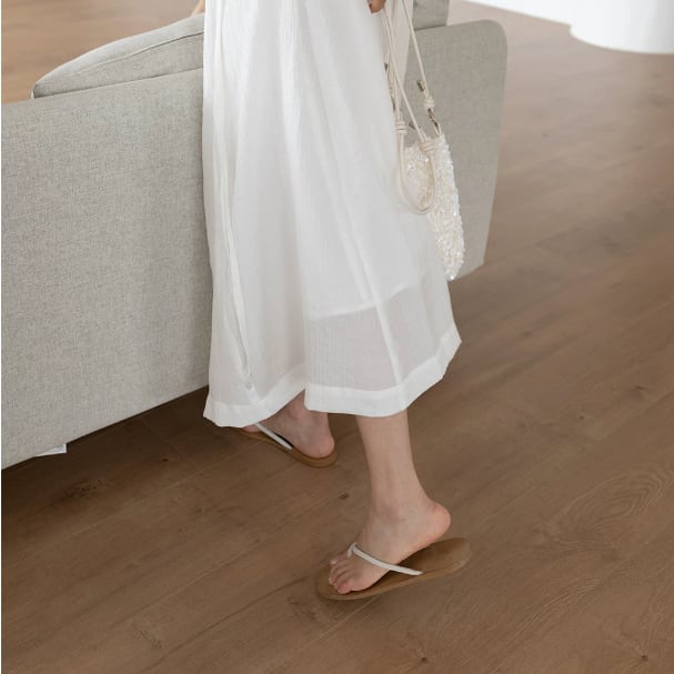 細身のストラップとゴールドパーツが魅力のフラットサンダル。 https://www.abeille.shop/items/112300260