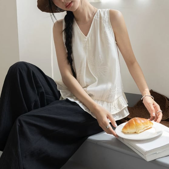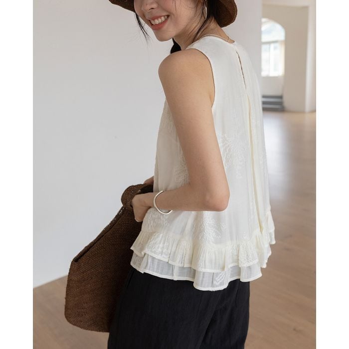 控えめな刺繍入りで、フェミニンなデザインの一枚です。