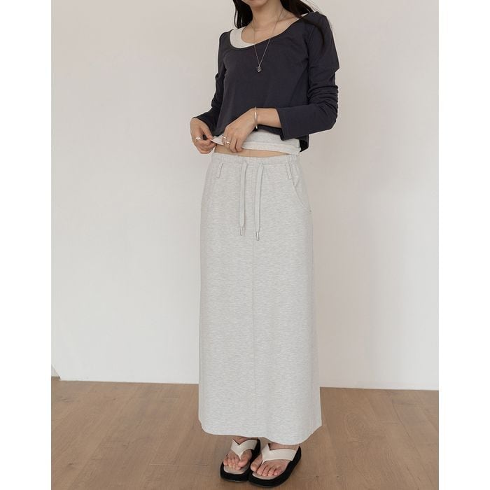 ドローコード付のロングスカート。 https://www.abeille.shop/items/142633321