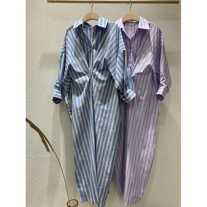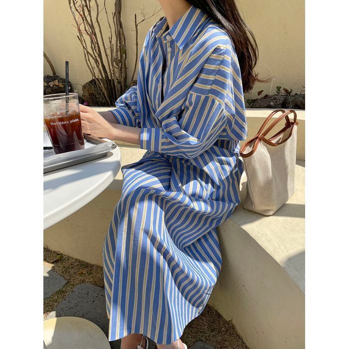 ストライプ柄のシャツワンピース。