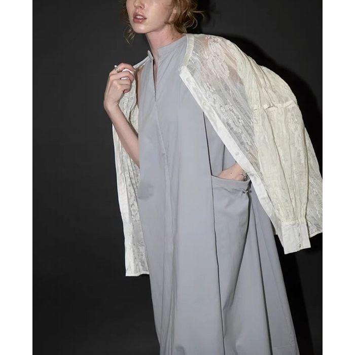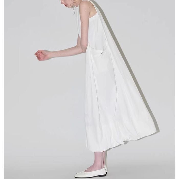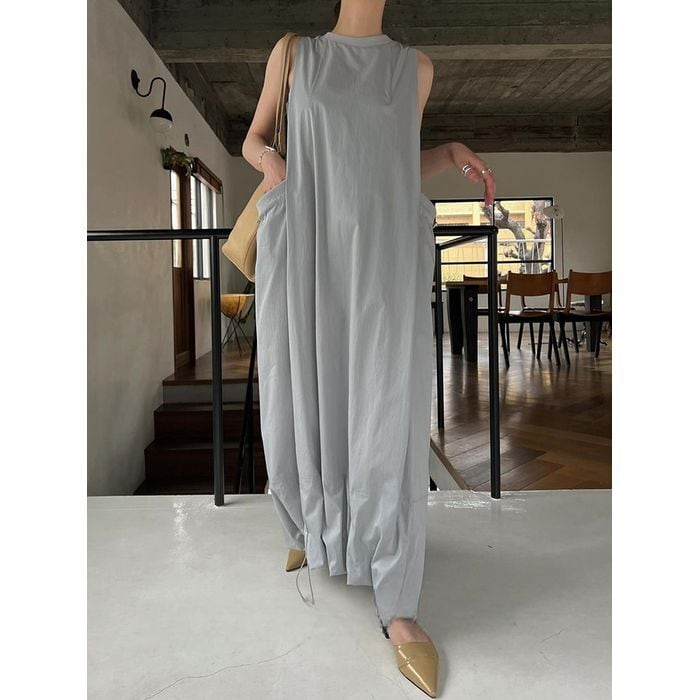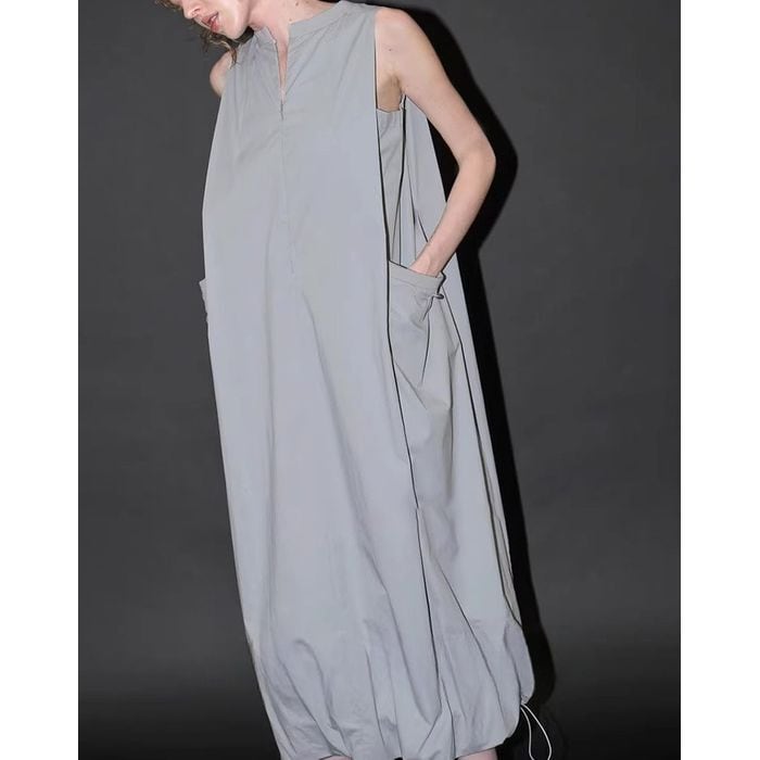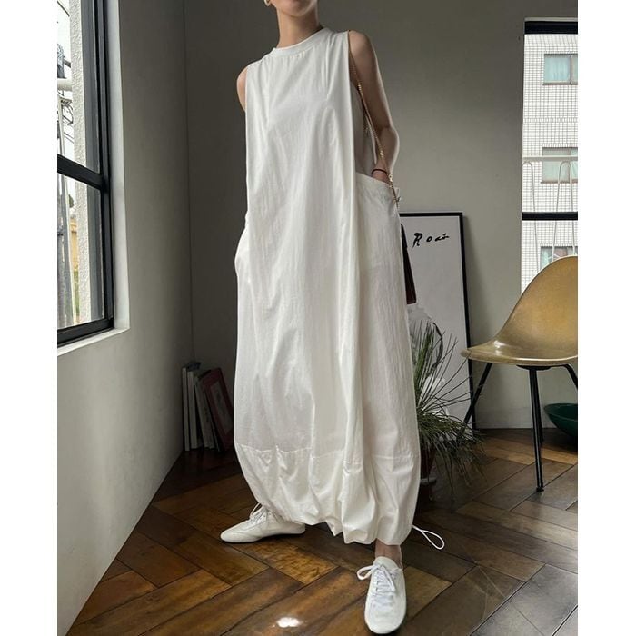 ドローストリングの裾とポケットデザインがひと癖あるノースリーブワンピース。