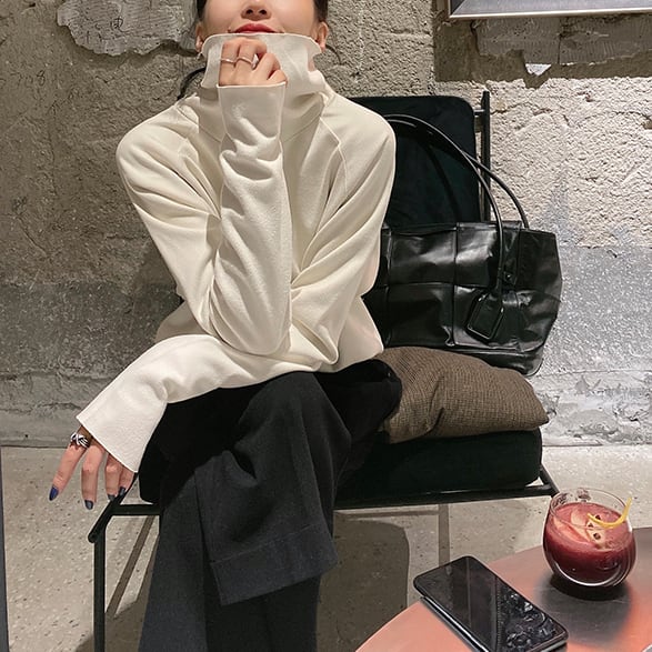 一枚ではもちろんコートやジャケットのインナーとしても活躍する一枚です。