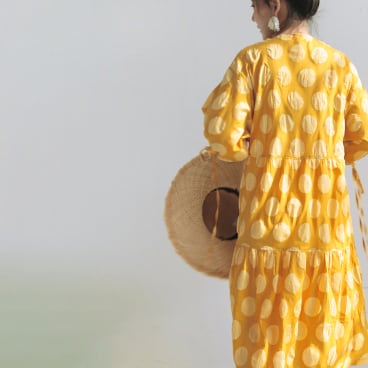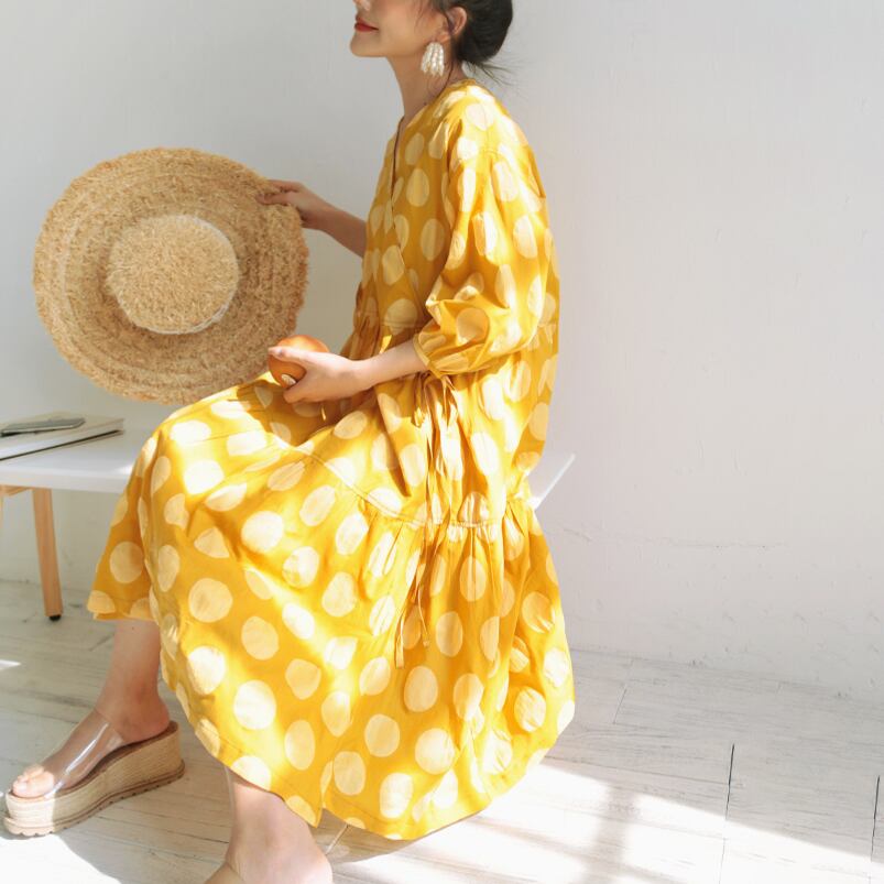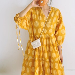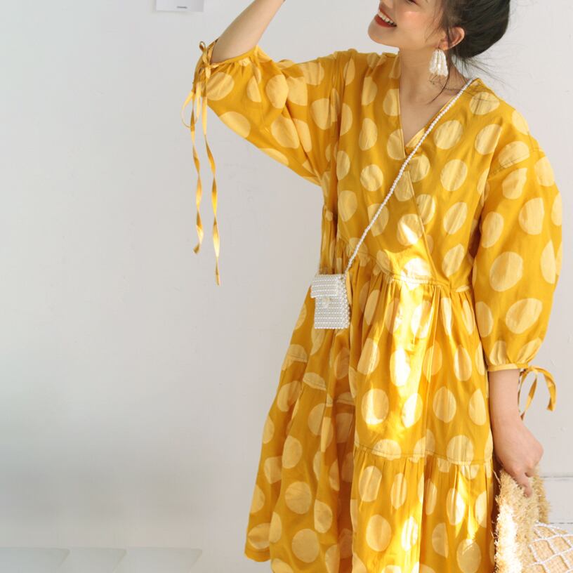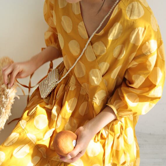 着るだけで映えるドット柄ワンピース。