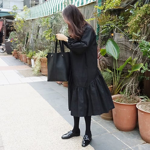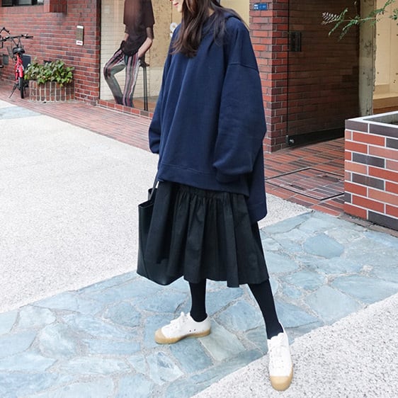 上からオーバーサイズのニットや、スウェットを重ねて甘辛コーデにもおすすめです。