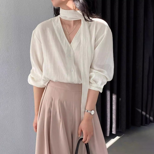 ユニークなドレープが特徴の一枚でさらっと着てサマになるトップス。