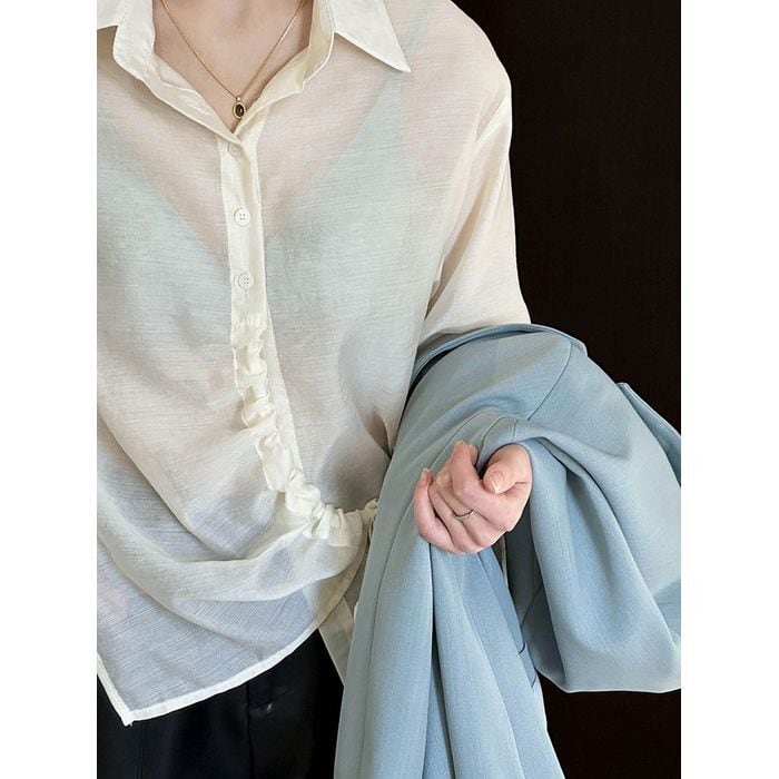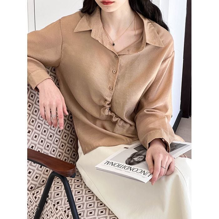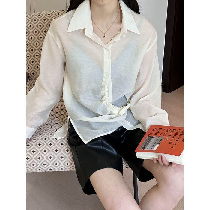 asymmetry drawstring shirt 12939