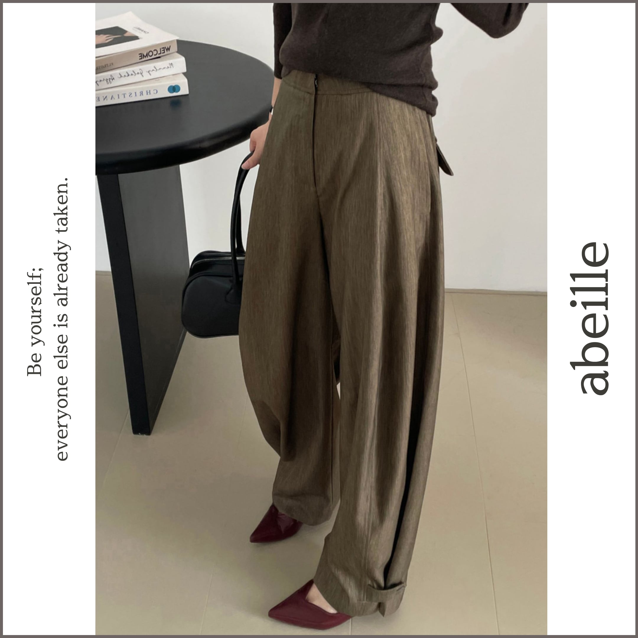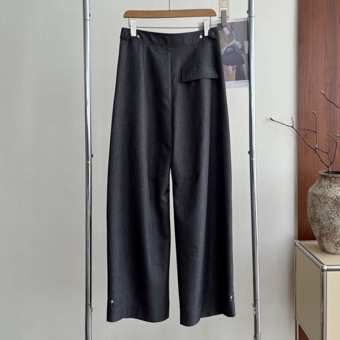 裾のタブがワンポイントのワイドパンツ。
