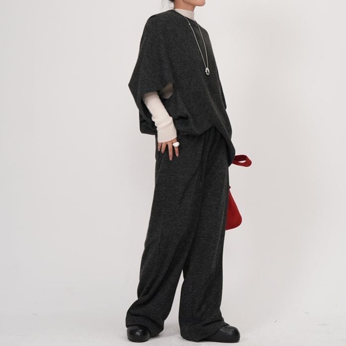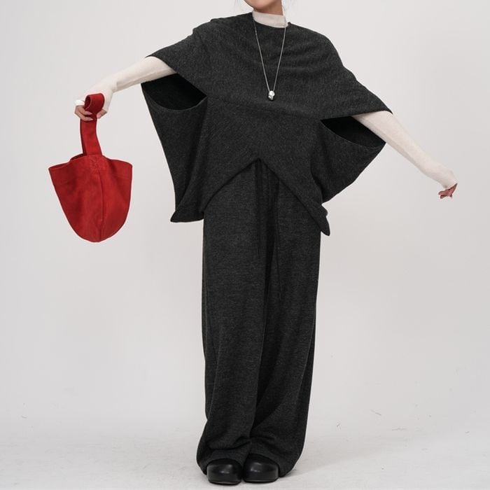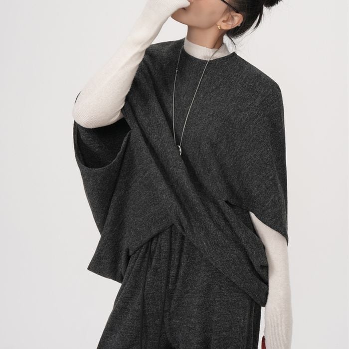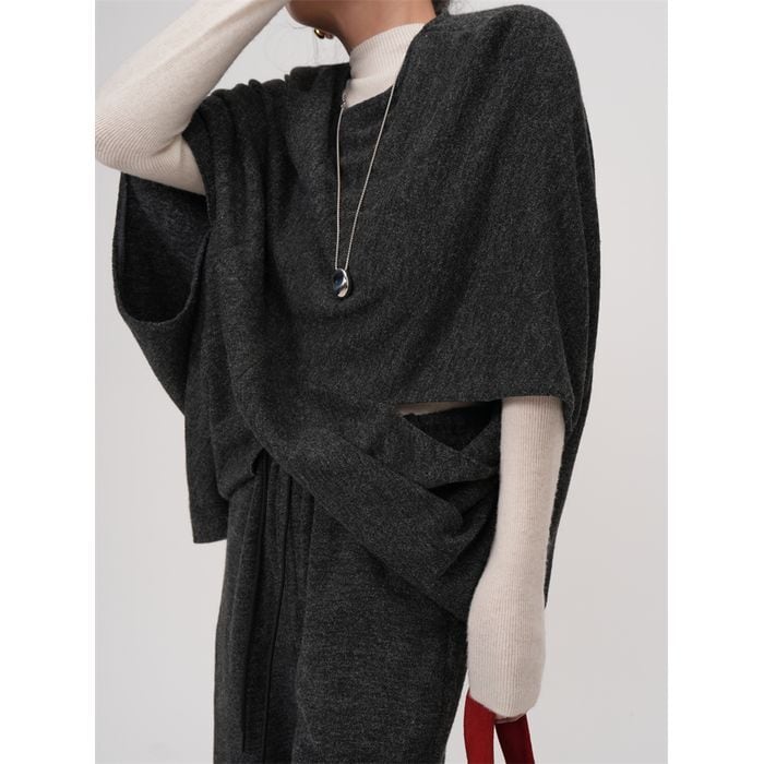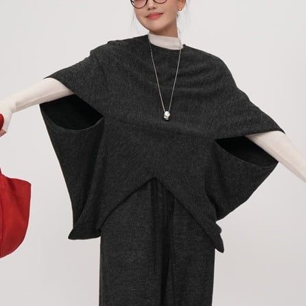 ドレープのあるケープスタイルが魅力のニットトップス。